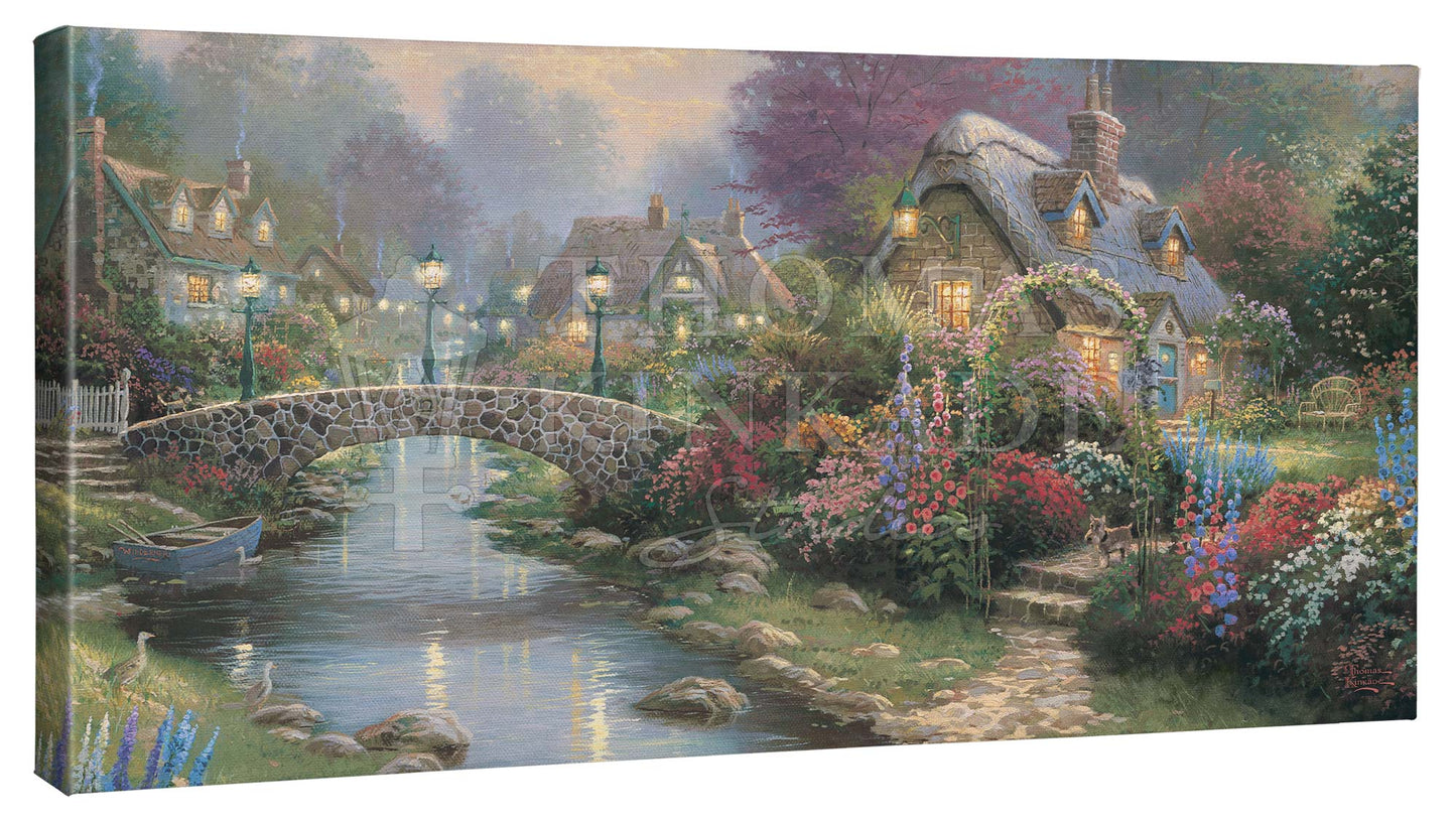 Thomas Kinkade Studios Gallery Wraps are perfect for any space. Each wrap is crafted with our premium canvas reproduction techniques and hand wrapped around a deep, hardwood stretcher bar. Hung as an ensemble or by itself, this frame-less presentation gives you a versatile way to display art in your home.