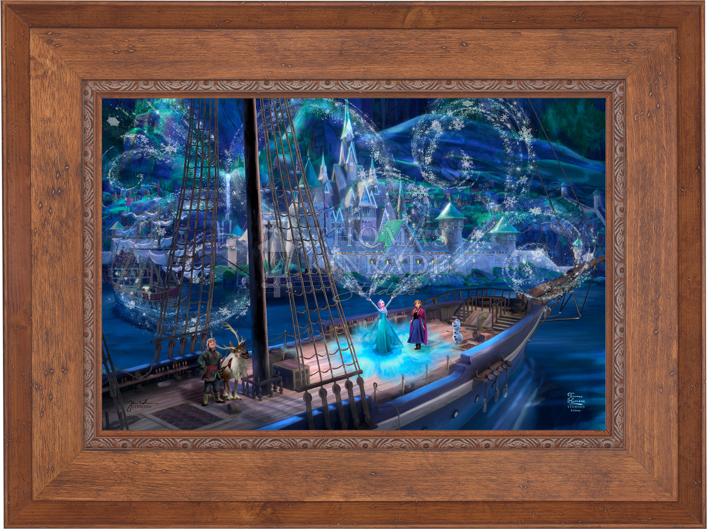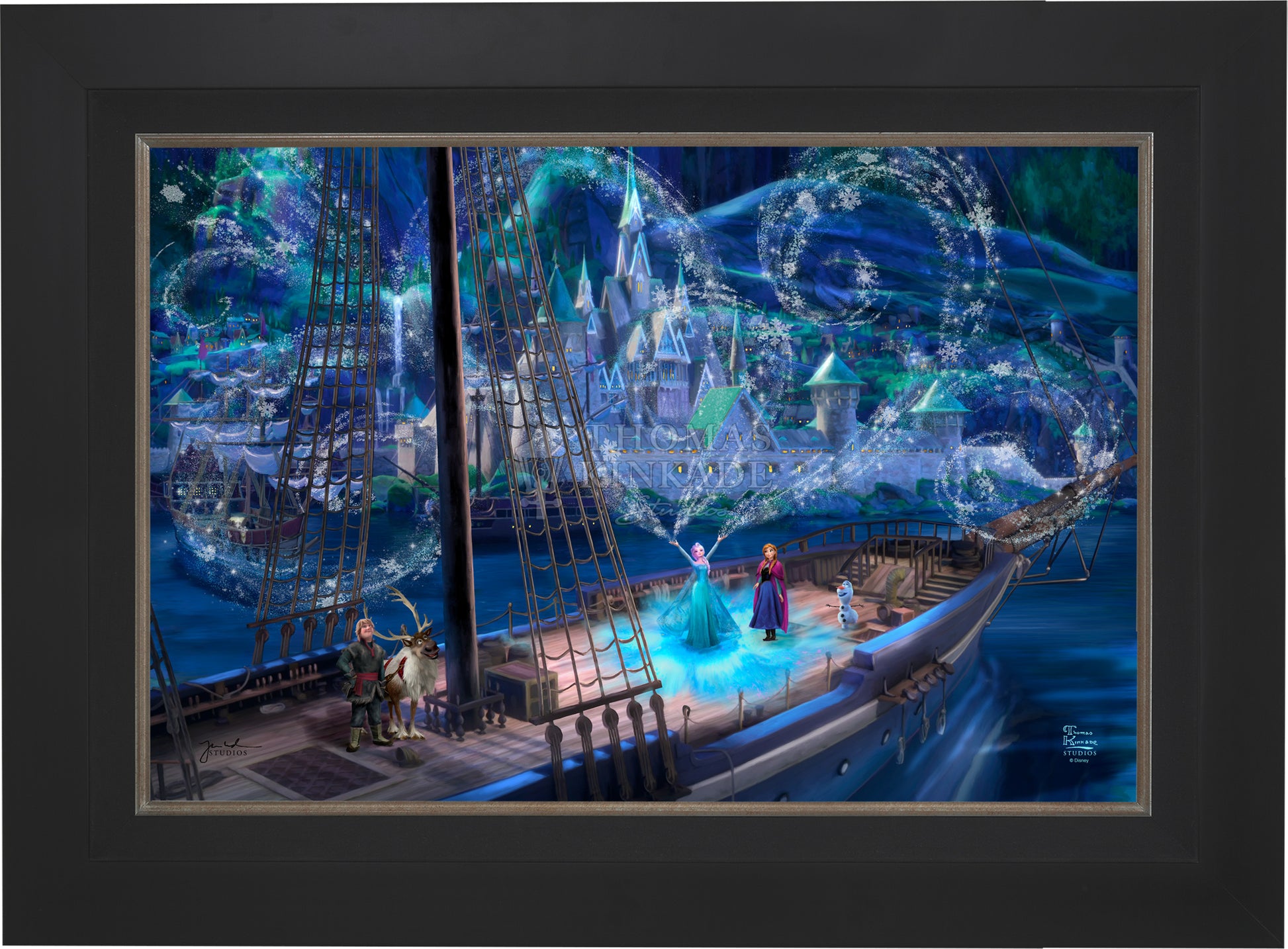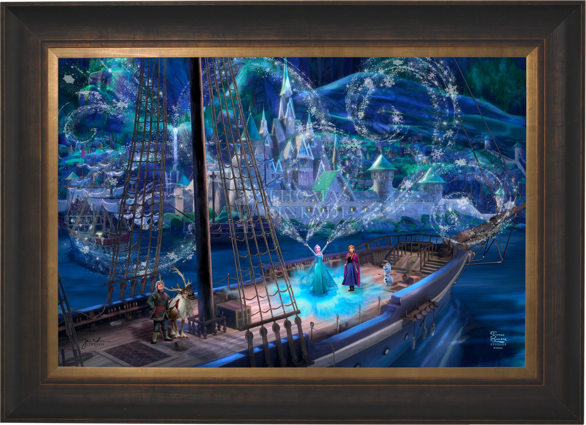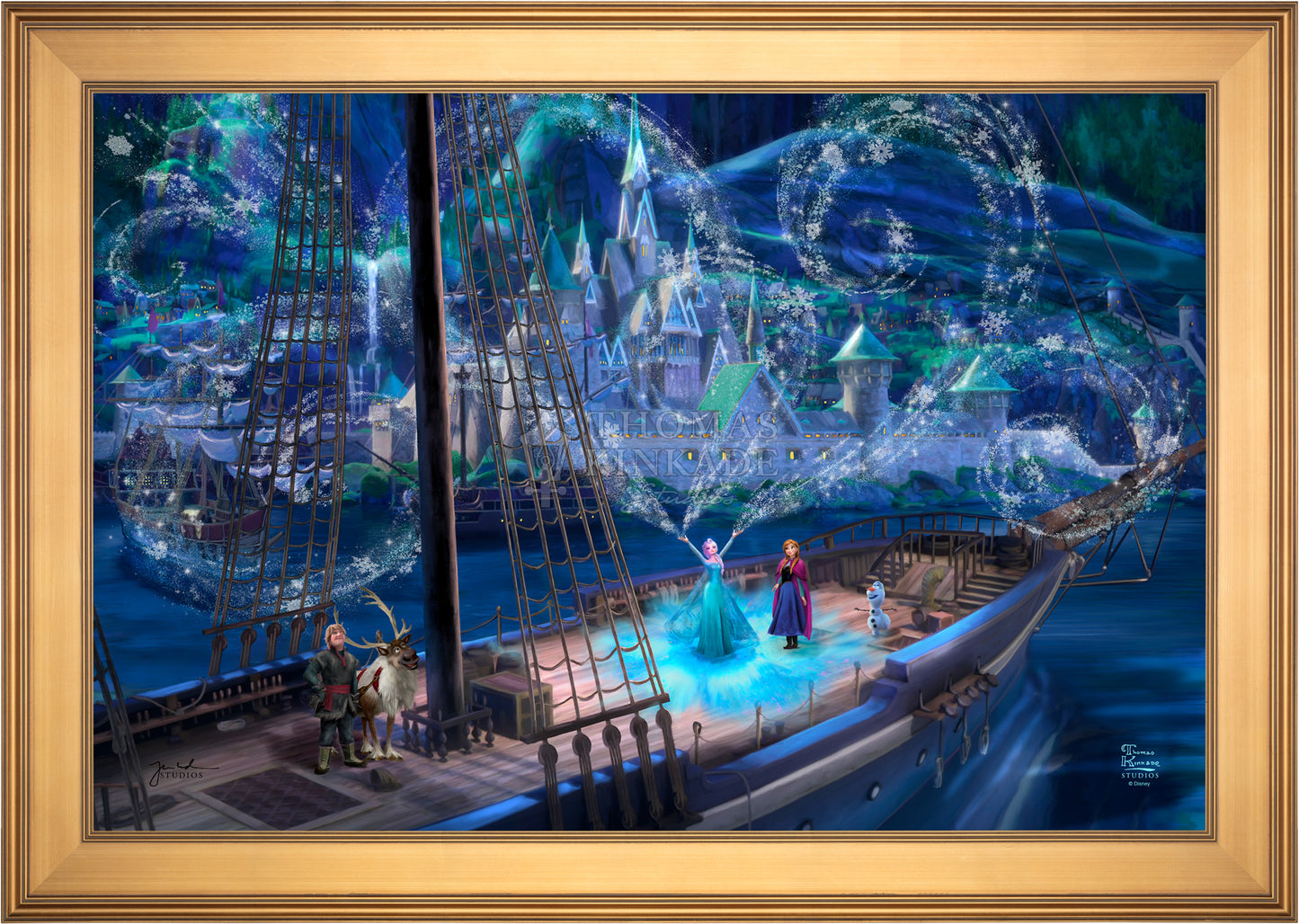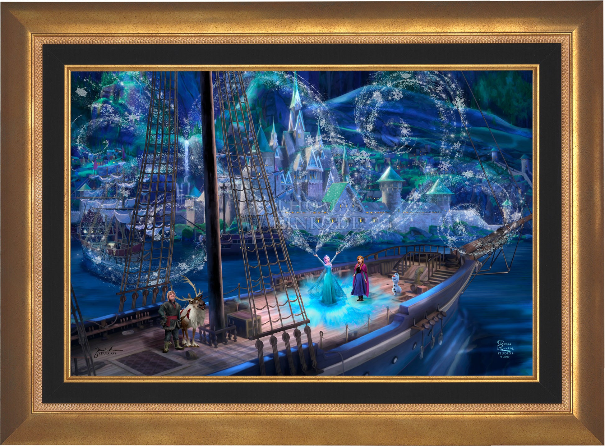 Thomas Kinkade Studios is pleased to present Disney Frozen Love and Magic . © Disney