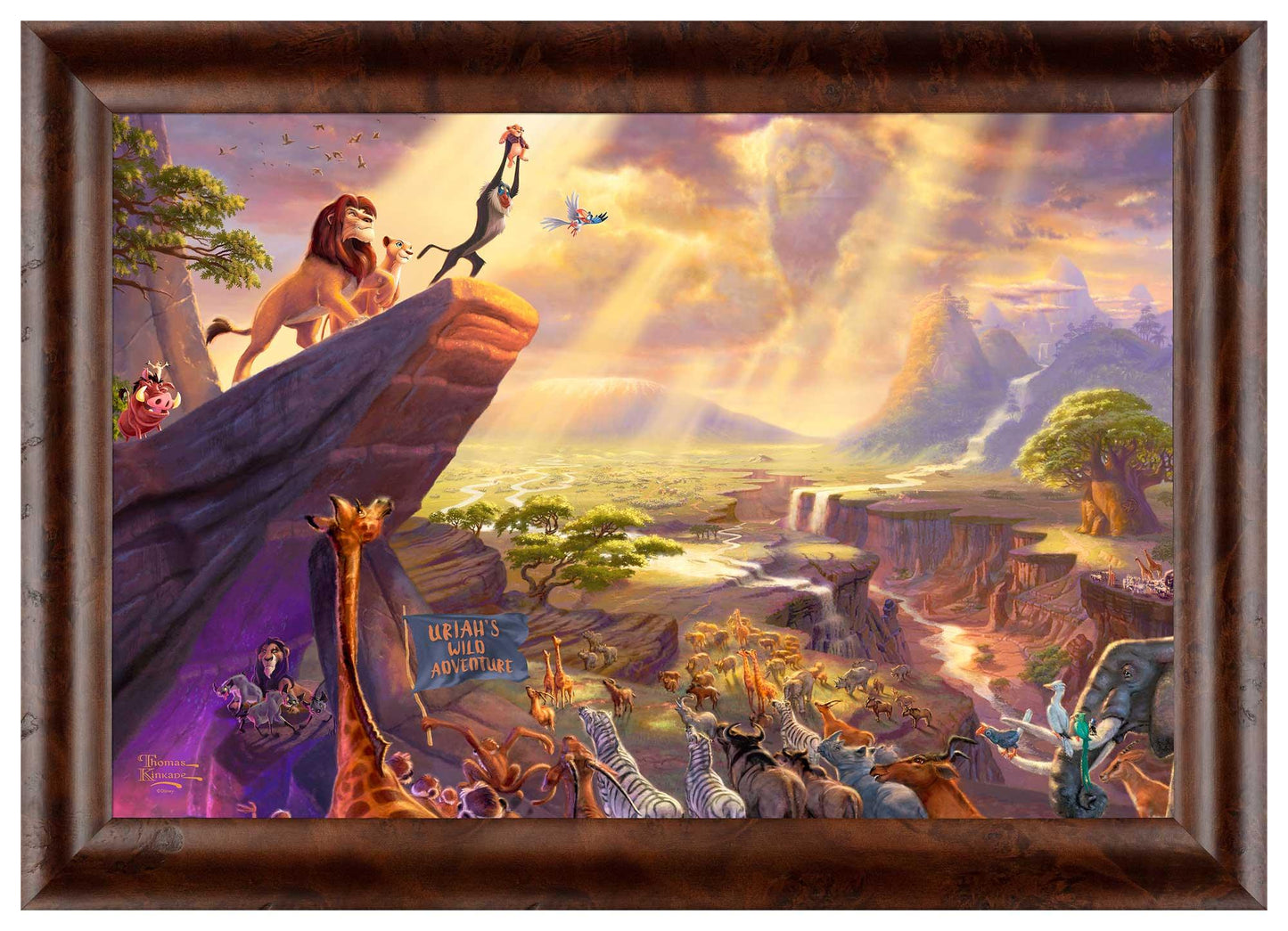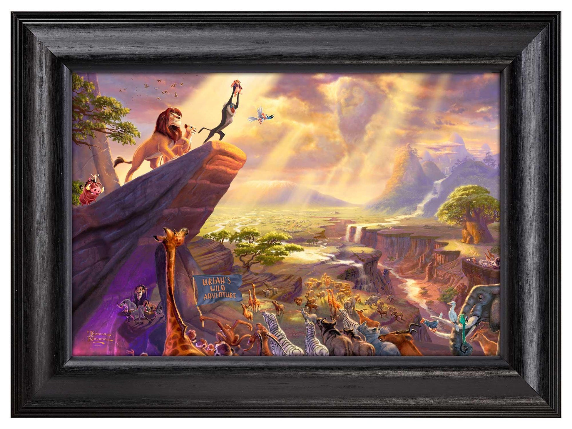 Disney Dreams Collection by Thomas Kinkade Studios now available as a personalized framed canvas! We'll add one line of personalization to the flag in the image so you or someone special can feel part of this adored love story! Specify personalization during checkout or contact us for additional personalization requests. Open edition canvas framed. Available with multiple frame choices in multiple sizes. Open Edition Certificate of Authenticity included.