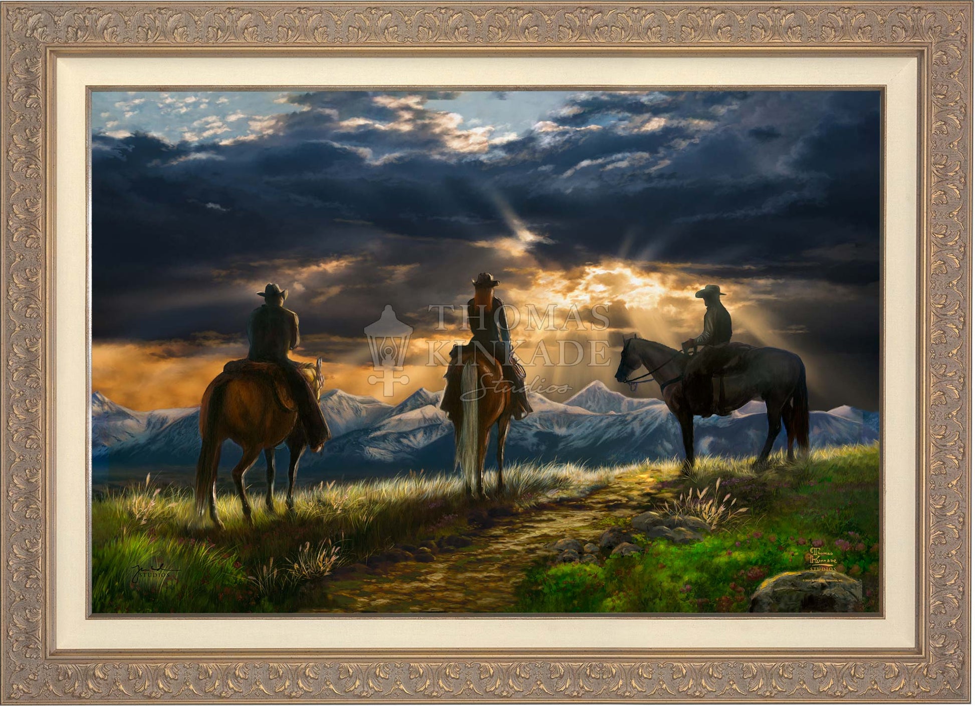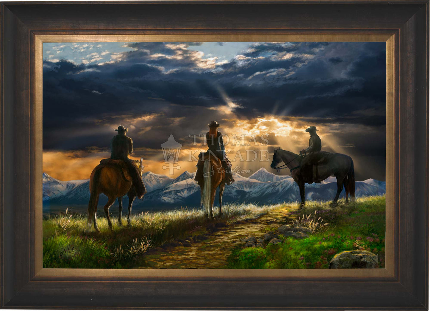Thomas Kinkade Studios Limited Edition Canvases combine old world craftsmanship with the finest materials and latest production technologies to produce extraordinary canvas artwork. Our reproduction process captures not only the color and mood of the enchanting original painting, but the actual brushwork as well. Every piece is hand-retouched by skilled artisans, giving the painting a look almost identical to the artist's on-easel original. Vibrant colors, rich textures and color tones accurate to the artists original brushstrokes are the hallmarks of your finished piece.