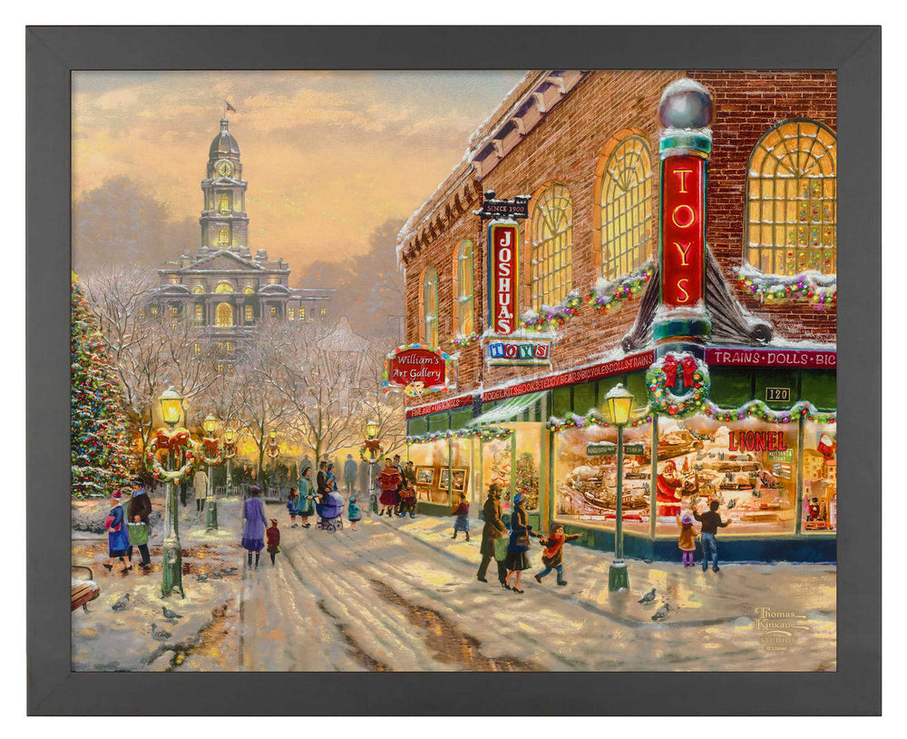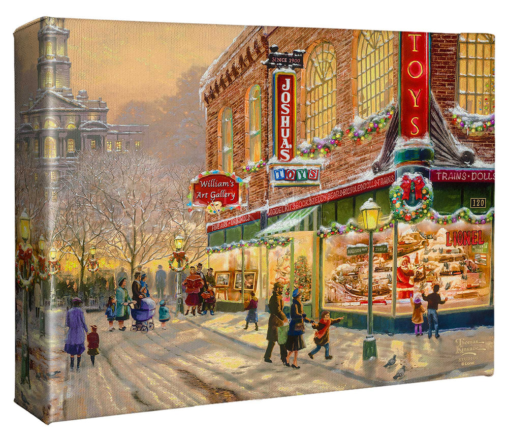 Every year children around the world make their Christmas wish lists for Santa. A visit to the local toy store can inspire and fuel their imaginations and spark creativity. People, young and old, are drawn to the display windows of toy stores, and are especially captivated by the movement of the train displays. Lionel Trains has been bringing this joy, innovation, and wonderment to children and adults for 12 incredible decades. Thomas Kinkade Studios presents A Christmas Wish, our collaboration with Lionel Trains in celebration of their 120th Anniversary, which includes a very special tribute to Joshua Lionel Cowen, Founder of Lionel Trains. His beloved and highly collected trains are featured in the main display corner window at Joshua’s Toy Store. Thomas Kinkade Studios is proud to partner with Lionel Trains to create lasting memories for our collectors and their families, in hopes that every Christmas wish comes true.