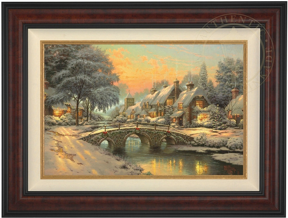 As I considered subjects for a Christmas painting this year, my thoughts turned to the familiar charms of village life that I celebrated in my beloved "Cobblestone Bridge." I know this stately old bridge well enough to conjure it and its environs when it wears a mantle of white.