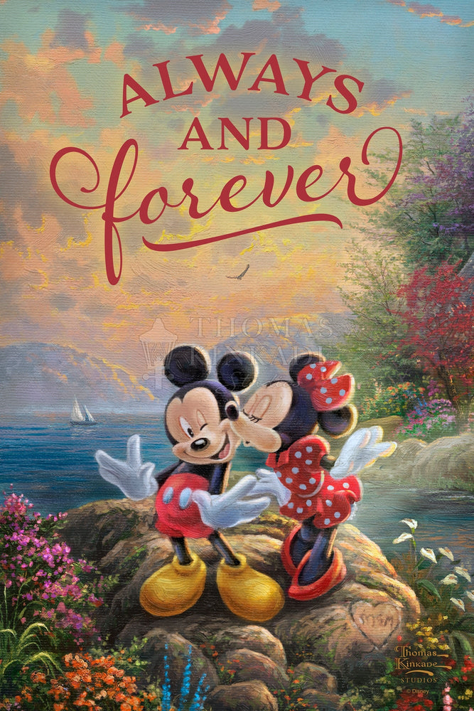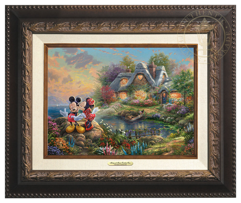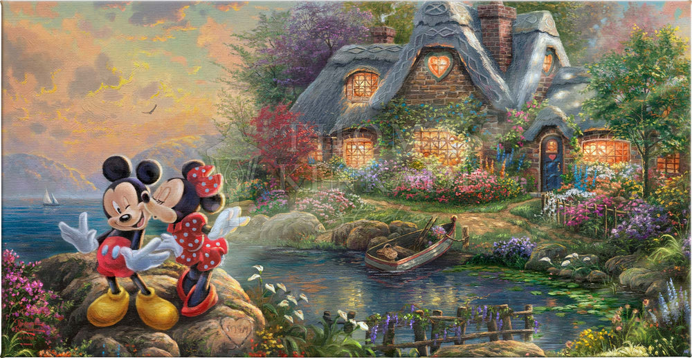 - Mickey and Minnie – Sweetheart Cove is the first Thomas Kinkade Studios artwork that features Mickey Mouse and Minnie Mouse together.