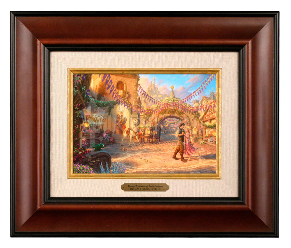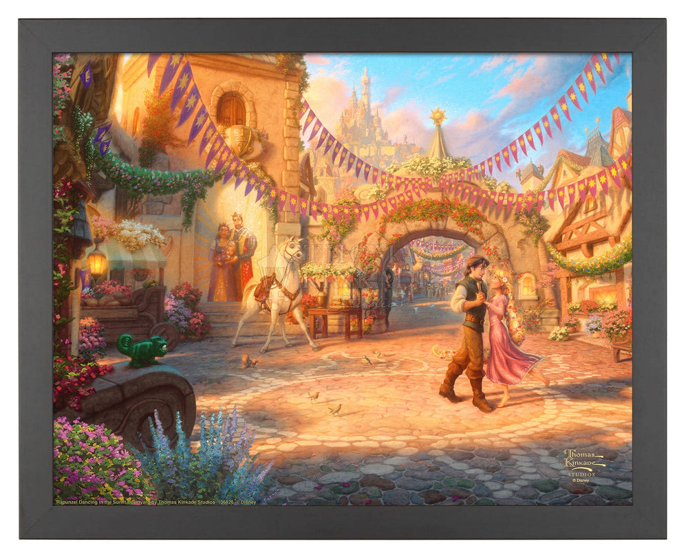 • Rapunzel Dancing in the Sunlit Courtyard is the sixth and final Limited Edition Art release in the Dancing in the Light series. The previous paintings in this collection featured Belle, Cinderella, Snow White, Aurora, and Jasmine.