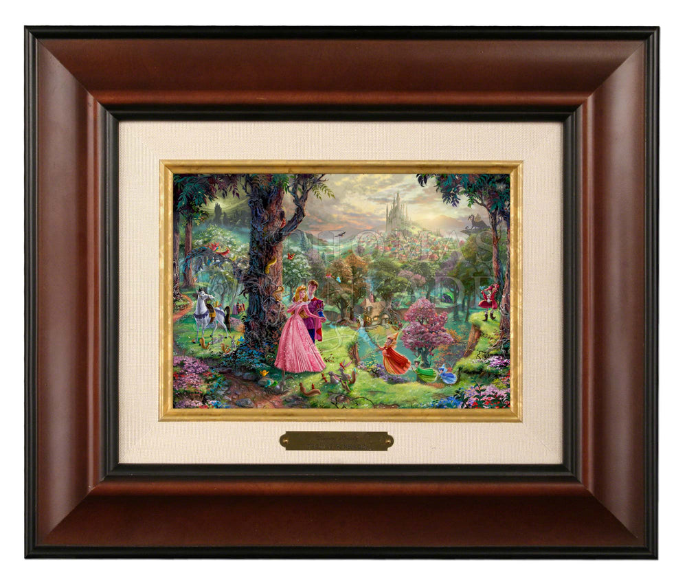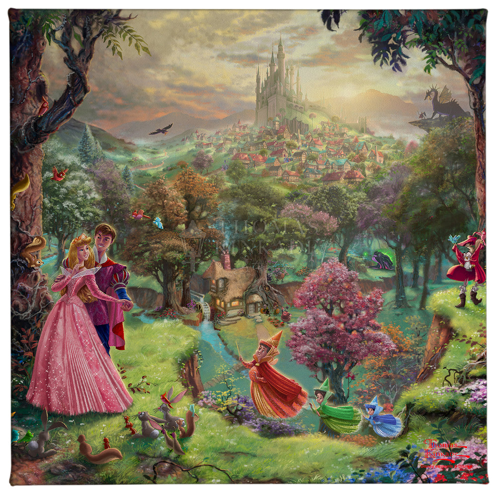 Sleeping Beauty is the eighth painting in the Disney Dreams Collection and one of the most detailed in the entire series. The artwork tells the full story, from the peaceful cottage where Briar Rose is hidden, to the grand castle where Princess Aurora awakens with true love’s kiss. In the distance, you’ll even see the dramatic battle between Prince Phillip and Maleficent in her dragon form.