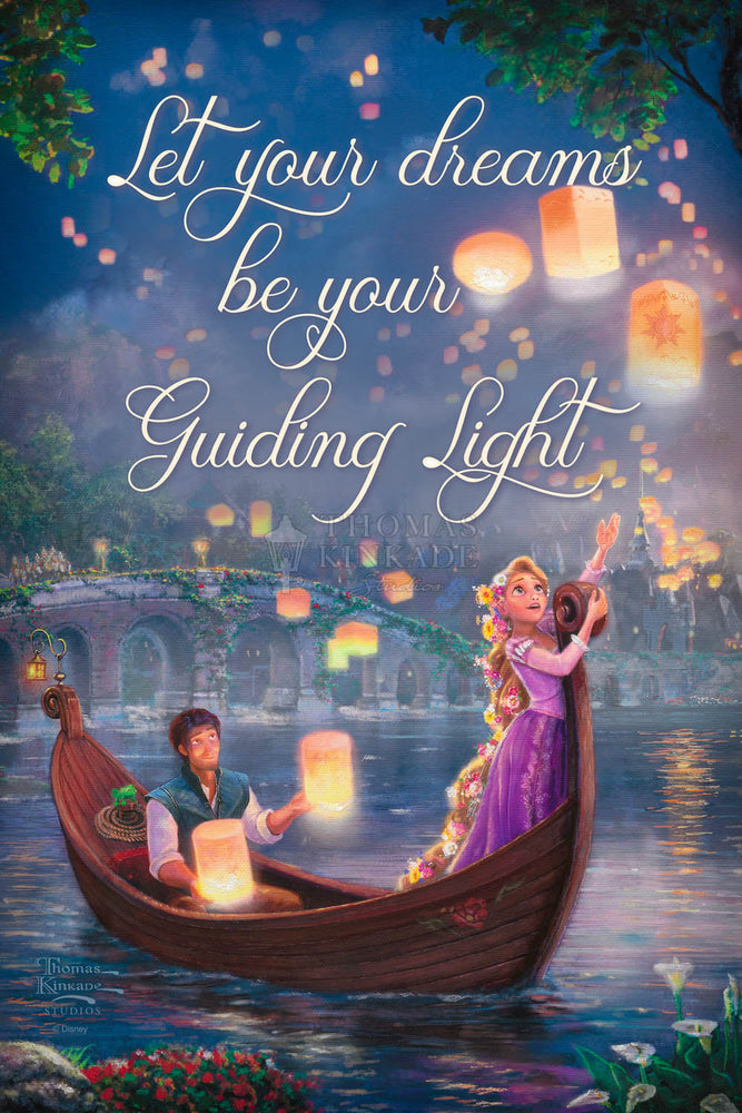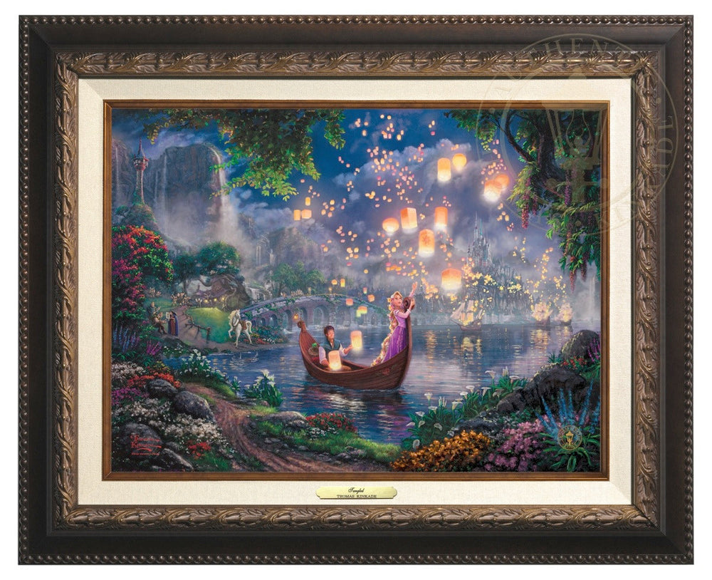 Tangled is a re-telling of the traditional fairy tale Rapunzel and joins other great titles as the 50th addition in the Walt Disney animated classic film series. It is with great pride then, that we at the Thomas Kinkade Studio have worked to fully realize the film's message of following your dream.