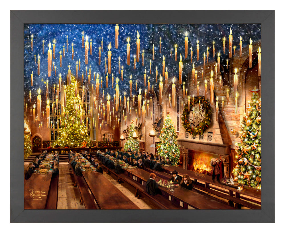Thomas Kinkade Studios' Harry Potter™ Great Hall, portrays the students and staff celebrating the Christmas Feast, a special dinner held for those who chose to stay at the School on Christmas Day.