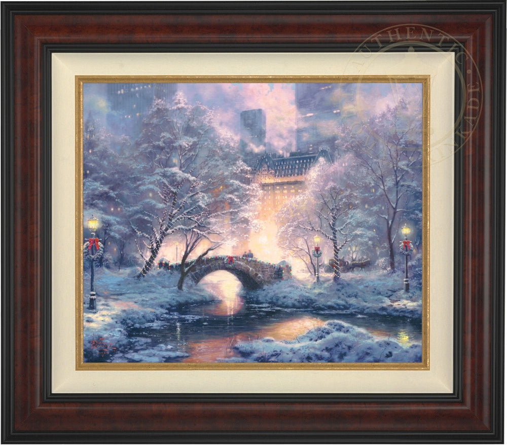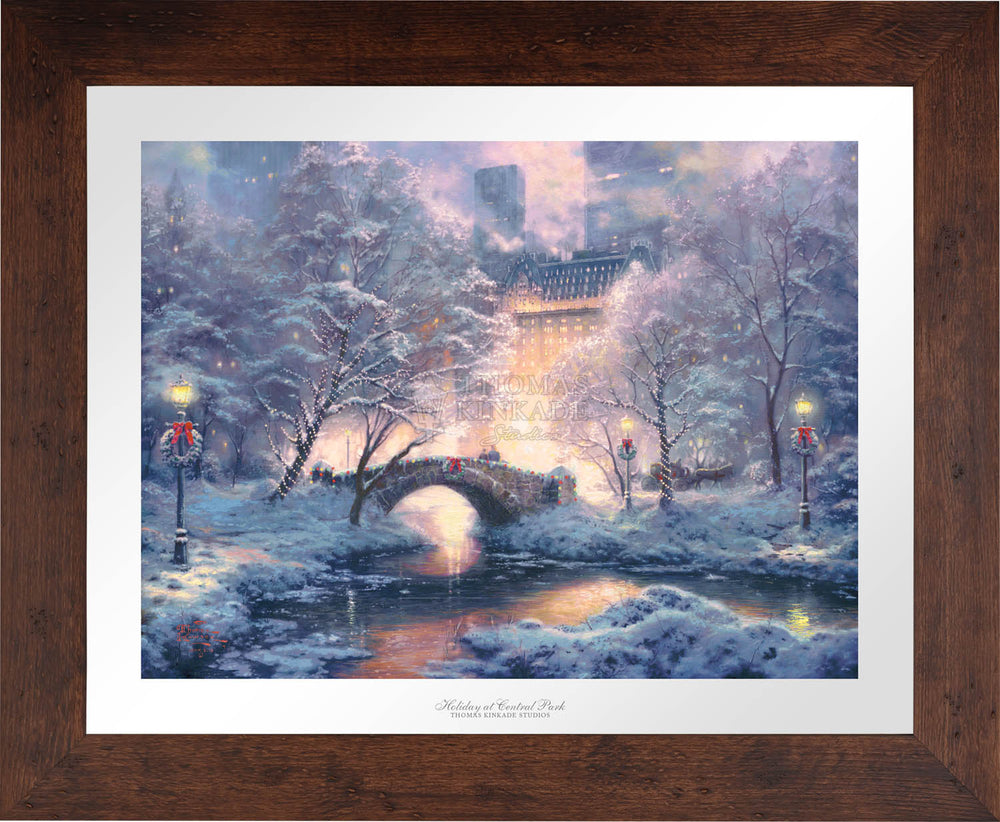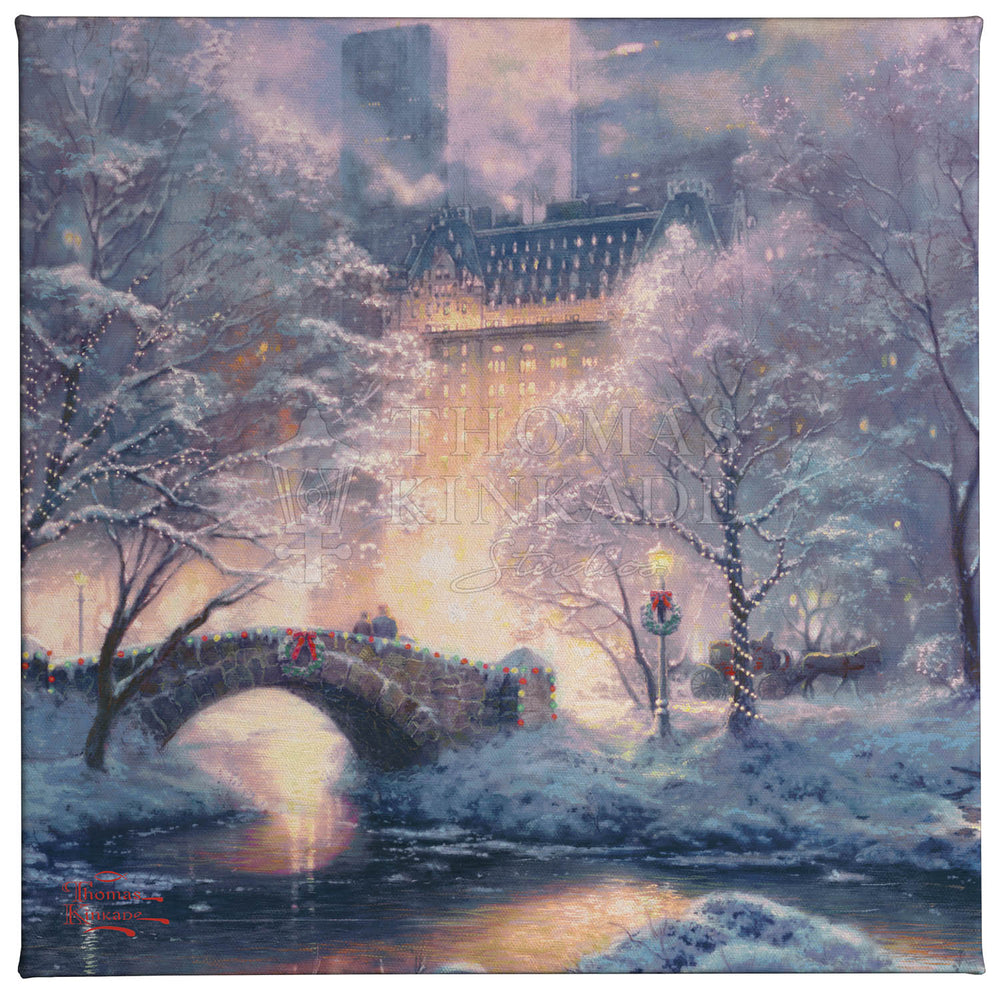 Central Park is an amazing focal point for New York City. People of all cultures and backgrounds enjoy its natural setting nestled deep within the walls of this iconic city. The holiday season adds a special charm to the park as holiday lights illuminate the snow dusted ground and chilled winding creek. In the background, The Plaza Hotel stoically braves the winter air. A stone's throw away the merchants of Fifth Avenue ply their holiday goods as New Yorkers hurry to complete their holiday preparations. In every sense, the city is in full celebration.