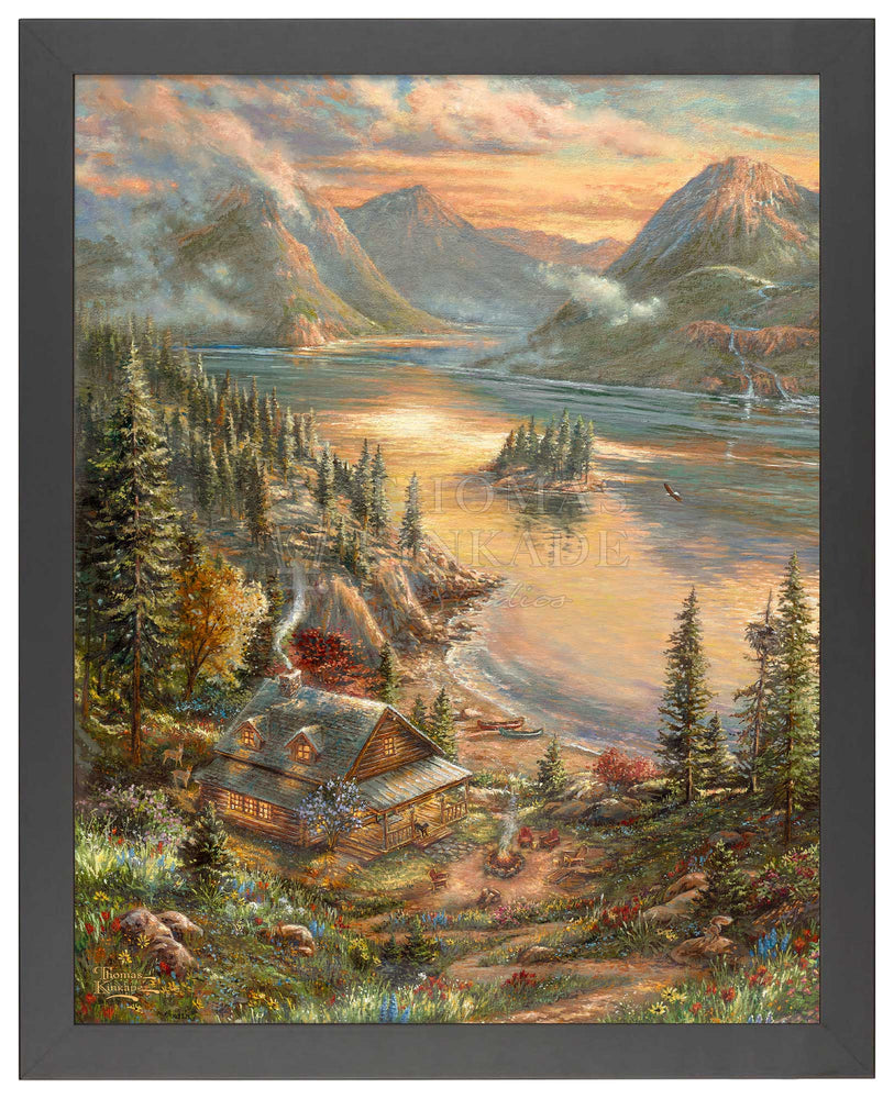 What constitutes living "the good life?" For some, it is living near the ocean, enjoying the relaxation of life at the beach. To others, it's traveling around the world, exploring its wonders. For Thomas Kinkade, the good life was time spent at a cozy cabin near a tranquil lake nestled at the base of a mountain. Lakeside Splendor by Thomas Kinkade Studios captures his experience and that of so many who love nature.