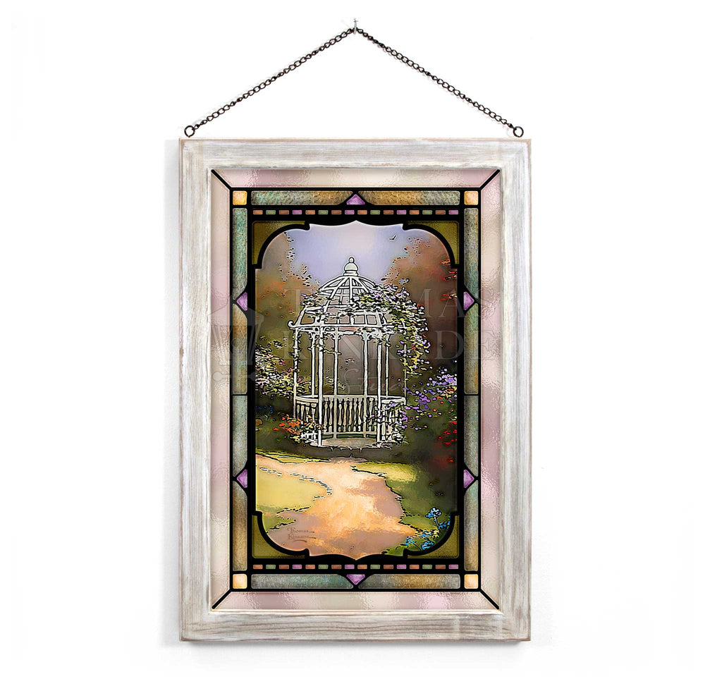 The third in my series of paintings in honor of my daughter Winsor, Lilac Gazebo offers a special delight to the senses. Here the air is fragrant with the heady perfume of lilacs. This tiny architectural gem nestled in a bower of flowering lilacs is a romantic dream come true.