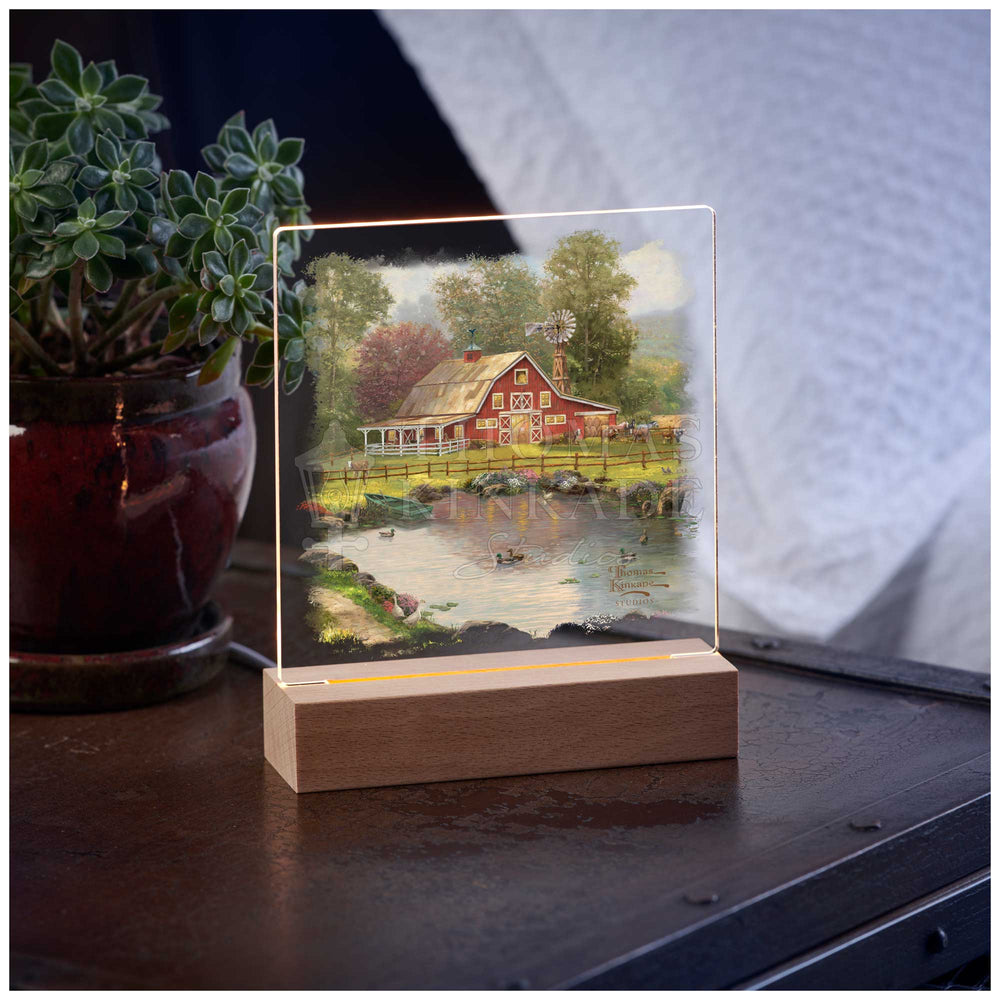 A walk on a farm brings a symphony of sights, smells and sounds to the senses. The aroma of fresh mowed hay, the whinnying of horses, and the abundance of baby animals is sure to bring a smile to everyone’s faces. Thomas Kinkade grew up in farm country and the smell of new hay was a treasured memory of his. He always dreamed of owning his own slice of heaven one day.