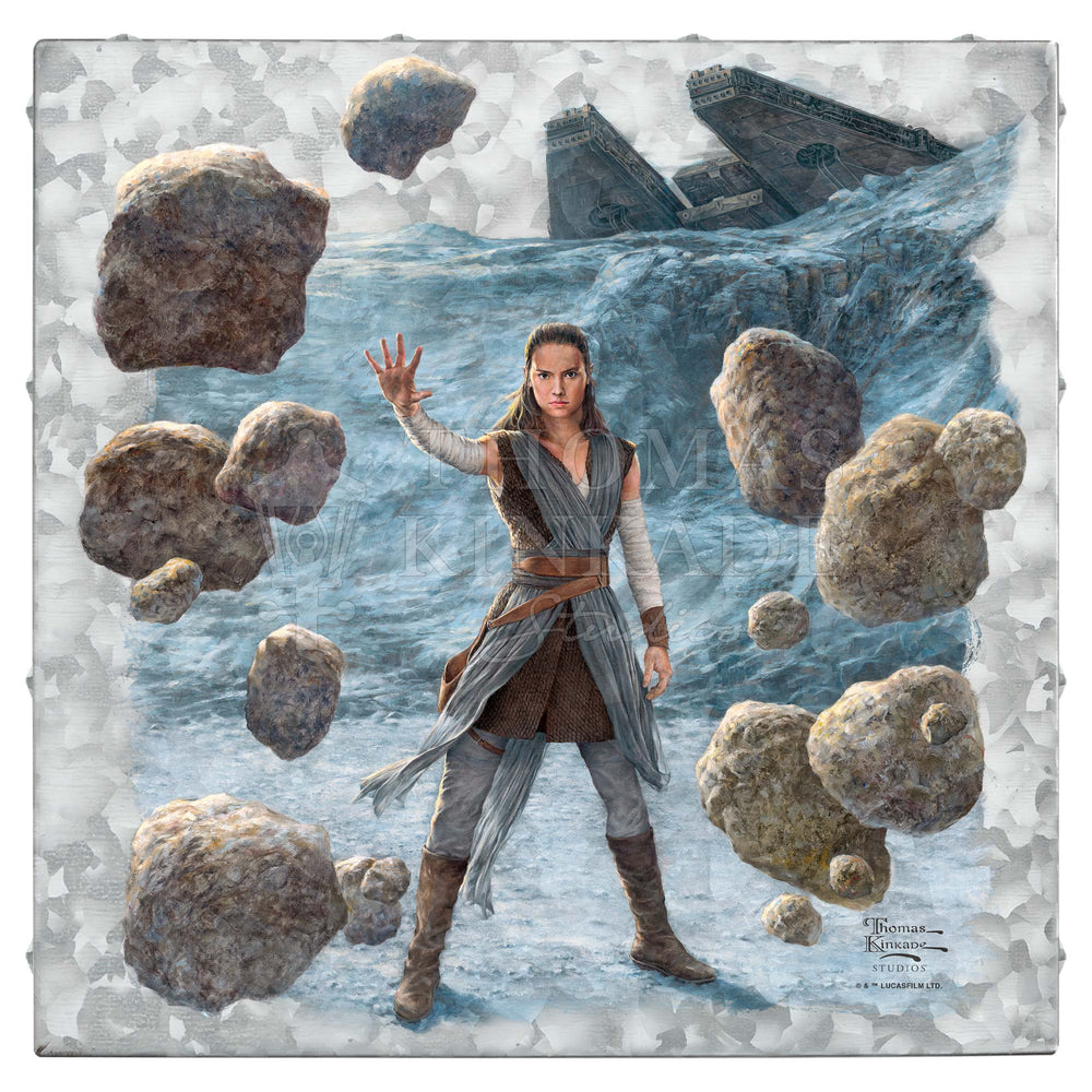 The Millennium Falcon has landed on Crait right above the back of the outpost cavern. Rey climbs down and sees the vulptex emerge through a small crevice, and senses that her friends are just inside behind all the fallen boulders. She raises her hand to move the boulders away from the cavern, saving her friends. The Resistance fighters emerge and join Rey aboard the Millennium Falcon, once more a step ahead of Kylo Ren and the First Order, restoring hope and inspiring rebellion across the galaxy.