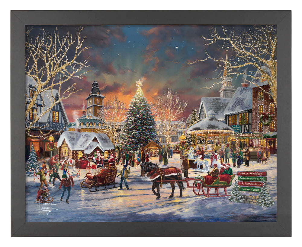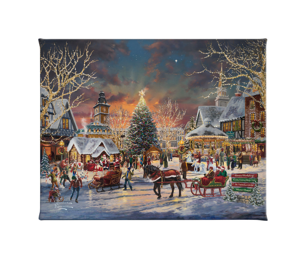 - The North Star sits atop the sky shining brightly over the meticulously lit village filled with festivities of the Christmas season. With a nod to classic Thomas Kinkade Studios s like Nicholas Circle , Santa’s Workshop , Winter Chapel , and Sunday Evening Sleighrides , it’s easy to imagine this day has been filled with fun.
