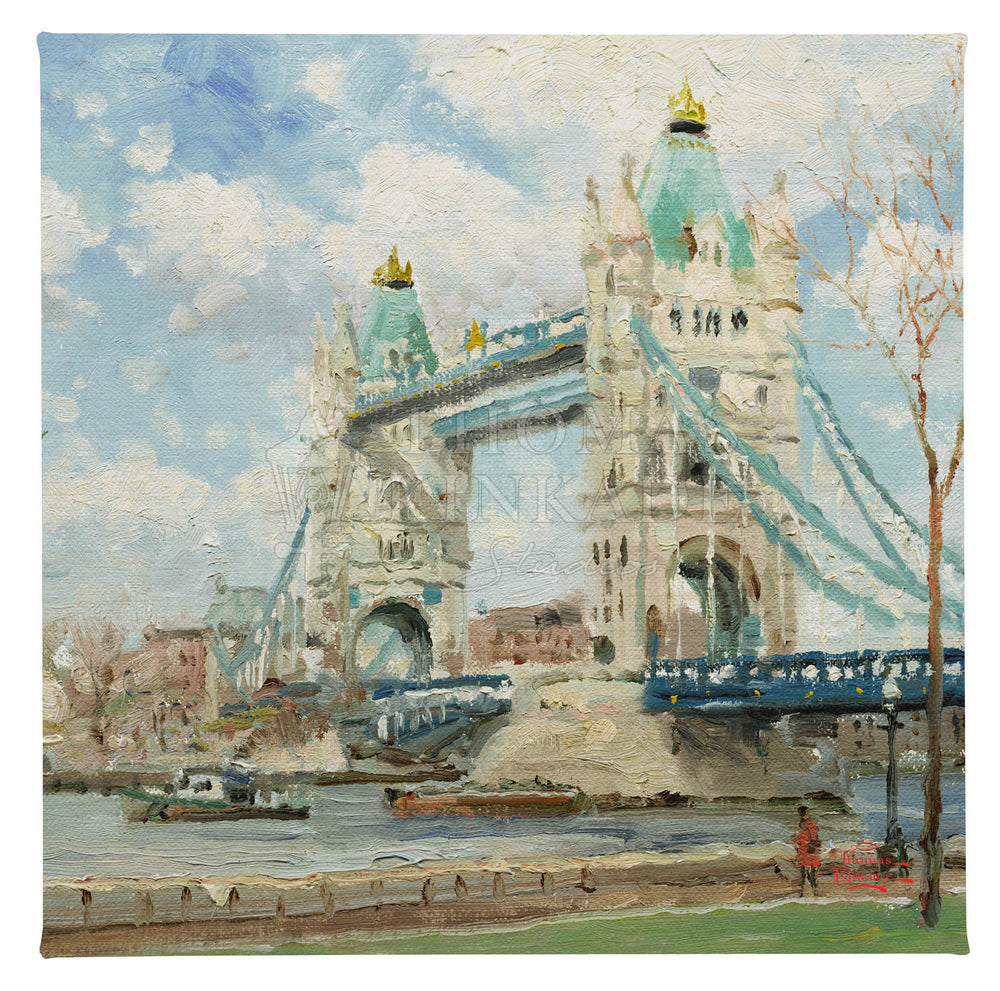 Scattered clouds pass over the Thames, casting an ever-changing pattern of light and shade on Tower Bridge. The painter has a succession of vistas to choose from. I picked the quality of light that brought the radiant blue accents into sharpest relief.