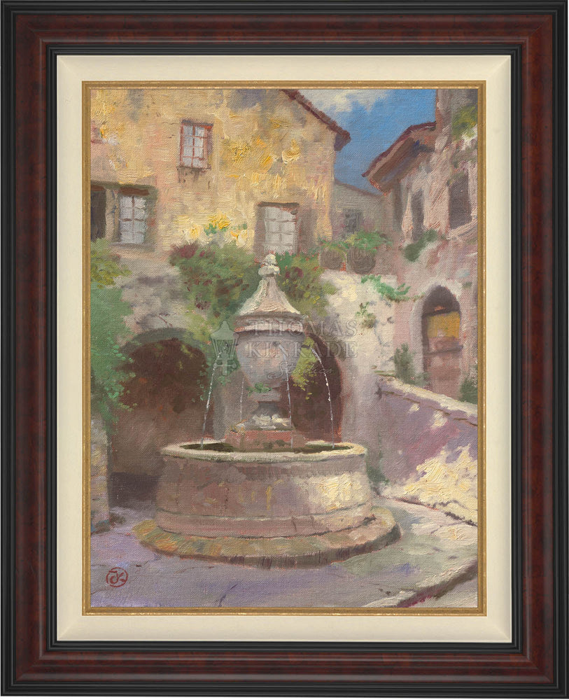 Today, if I close my eyes, I can hear him recount how he was walking through a small village in Tuscany and came across this stunning fountain scene. The village spoke a picturesque old architectural language to his artistic heart, and Thom captured this moment on canvas in Tuscan Village Fountain.