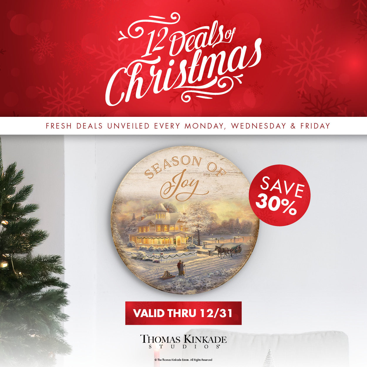 Join the festive fun as Thomas Kinkade Studios unveils exclusive deals every Monday, Wednesday and Friday from November 24th to December 19th during the 12 Deals of Christmas! Don't miss out on these limited-time treasures that promise to add a touch of holiday magic to your décor and gift-giving.