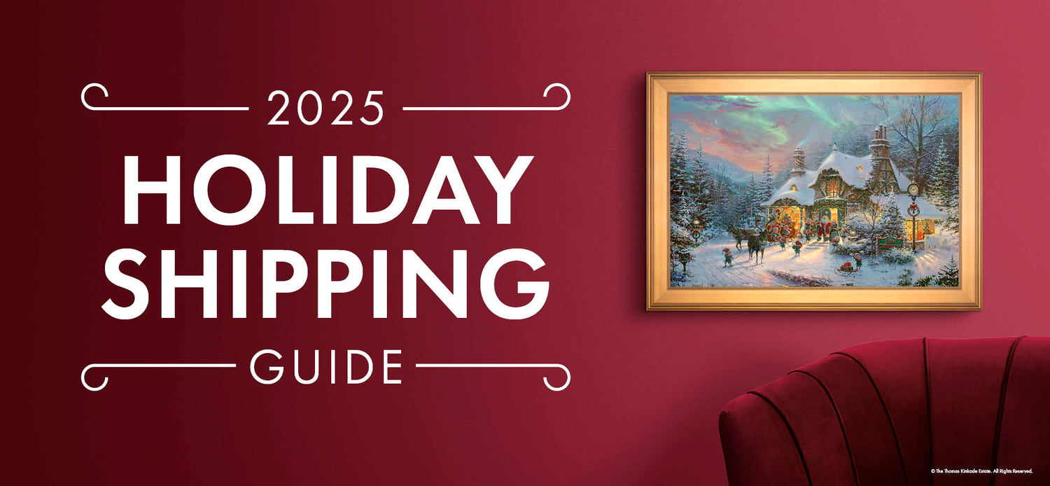 We assume that every order placed this time of year is a gift and it is our sincerest attempt to get all of your Thomas Kinkade Studios orders to you in time for Christmas. However, please be aware that some items are made to order and can take time to assemble. Please refer to this page to determine when your orders are likely to arrive. If you are at all concerned, we recommend that you call our art consultants at (408) 201-5000 to place your orders. They will be able to make sure that your specific piece and framing will absolutely arrive by Dec. 24th.