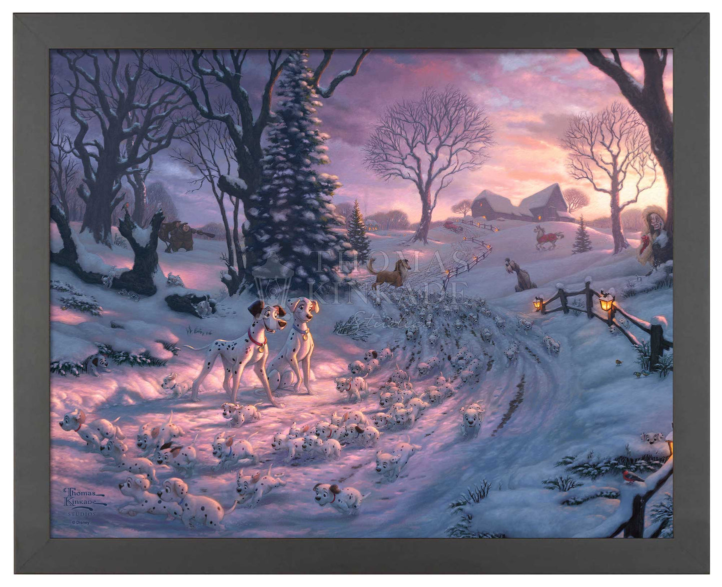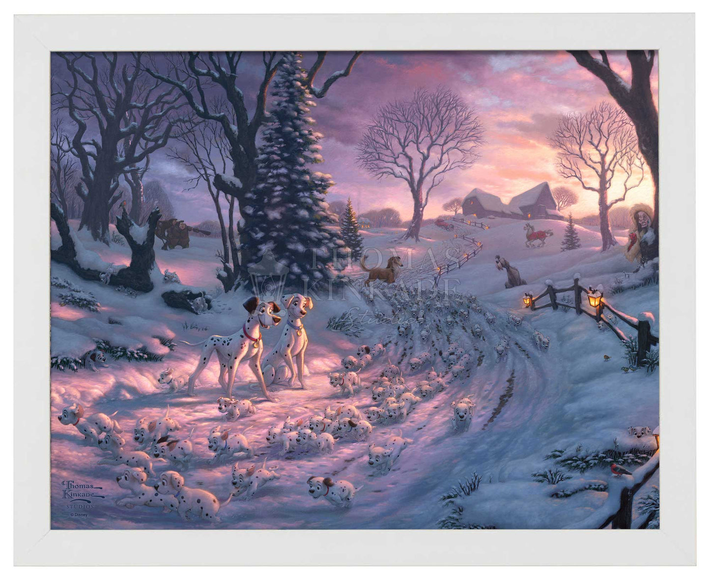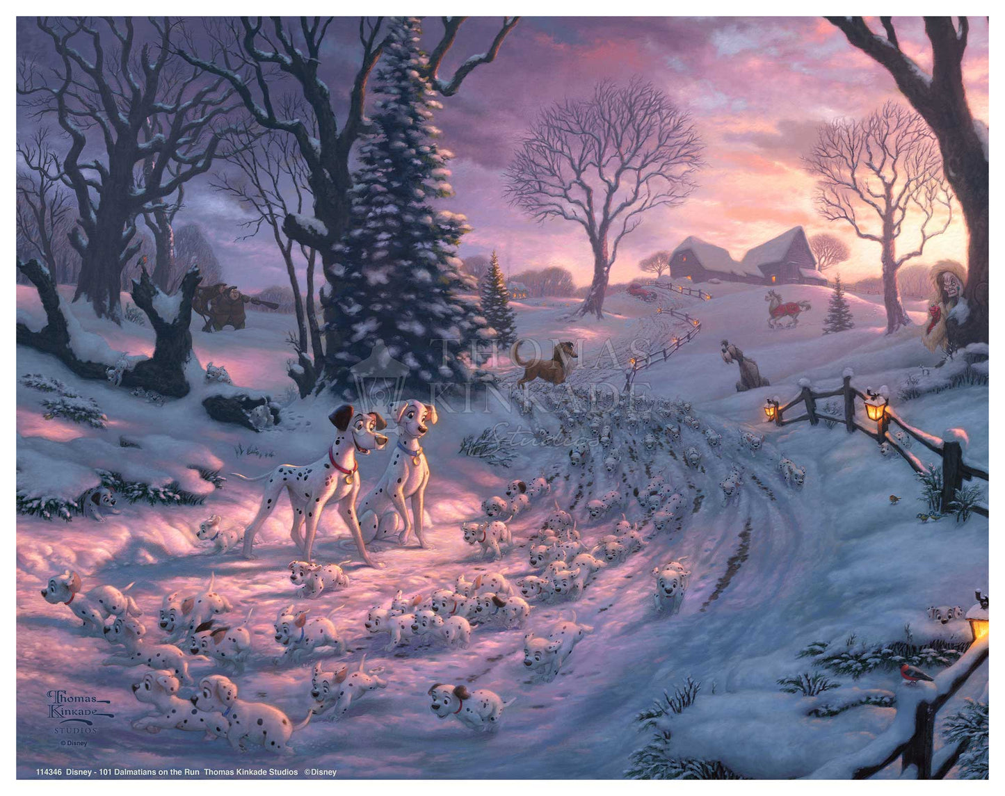 Love is on the run. Pongo and Perdita’s puppies have been freed and are on their way back to London with the help of some incredible friends. Collie and Colonel are ready to assist the puppies on their journey to freedom. Jasper and Horace have noticed Cruella de Vil stealthily skulking behind a nearby tree, plotting a way to recapture the puppies. In Disney 101 Dalmatians on the Run, Thomas Kinkade Studios captures the love of Pongo and Perdita’s family and invites all to root for the puppies on their adventure.