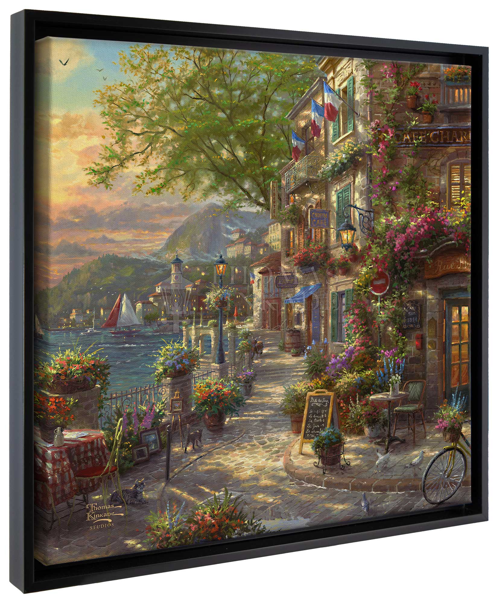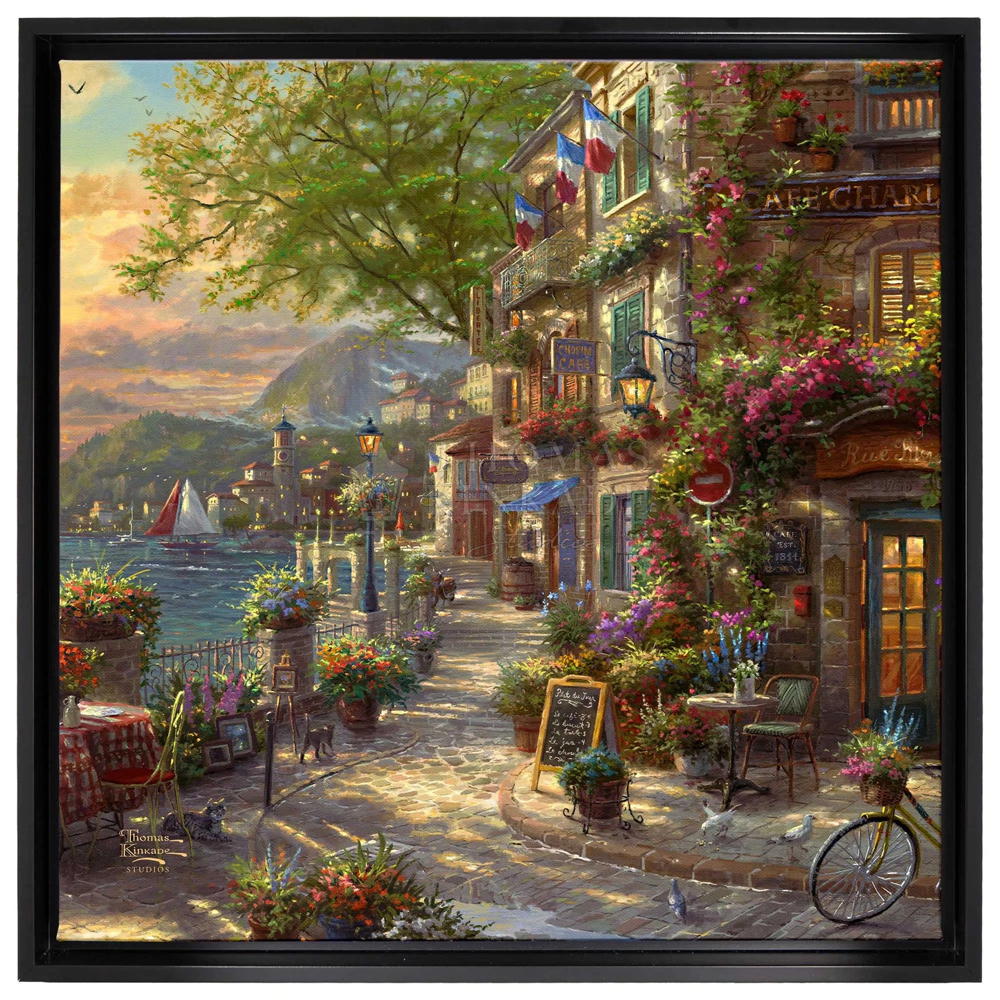 If there was a place that could melt your troubles away it would be here. The French Riviera is known the world over for its glamour, beauty, and pristine coastline but this tranquil spot takes it to a whole new level. Picture yourself navigating around the narrow streets of this Mediterranean city as you stumble upon an open table at a coastal café. The sun has just begun to set into a seascape teaming with sailboats as you sit down to enjoy the view. Allow Thomas Kinkade Studios to draw you into the glamourous hills and streets of France’s salty shores of the Mediterranean Sea with the release of their newest painting, French Riviera Café, a work that encapsulates every alluring aspect of southern France.