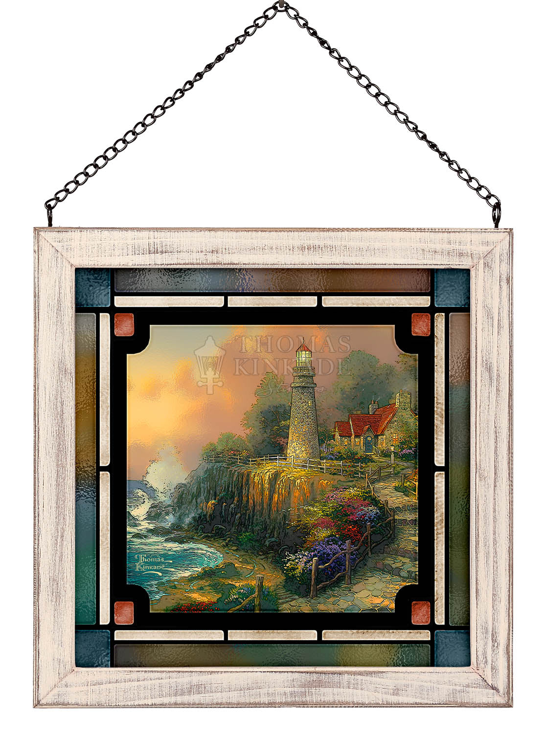 Let the light shine! Stained glass art hangings show their true colors when back-lit with natural sunlight. Classic images by Thomas Kinkade Studios are printed with fade resistant inks directly on glass, framed, and ready to hang.