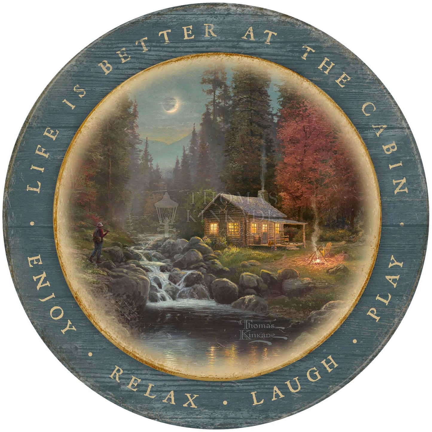 Add the look of rustic farmhouse charm with these beautifully printed wood signs featuring the art of Thomas Kinkade. Each piece is finished for indoor use, ready to hang with an easy-on key hole hanger.