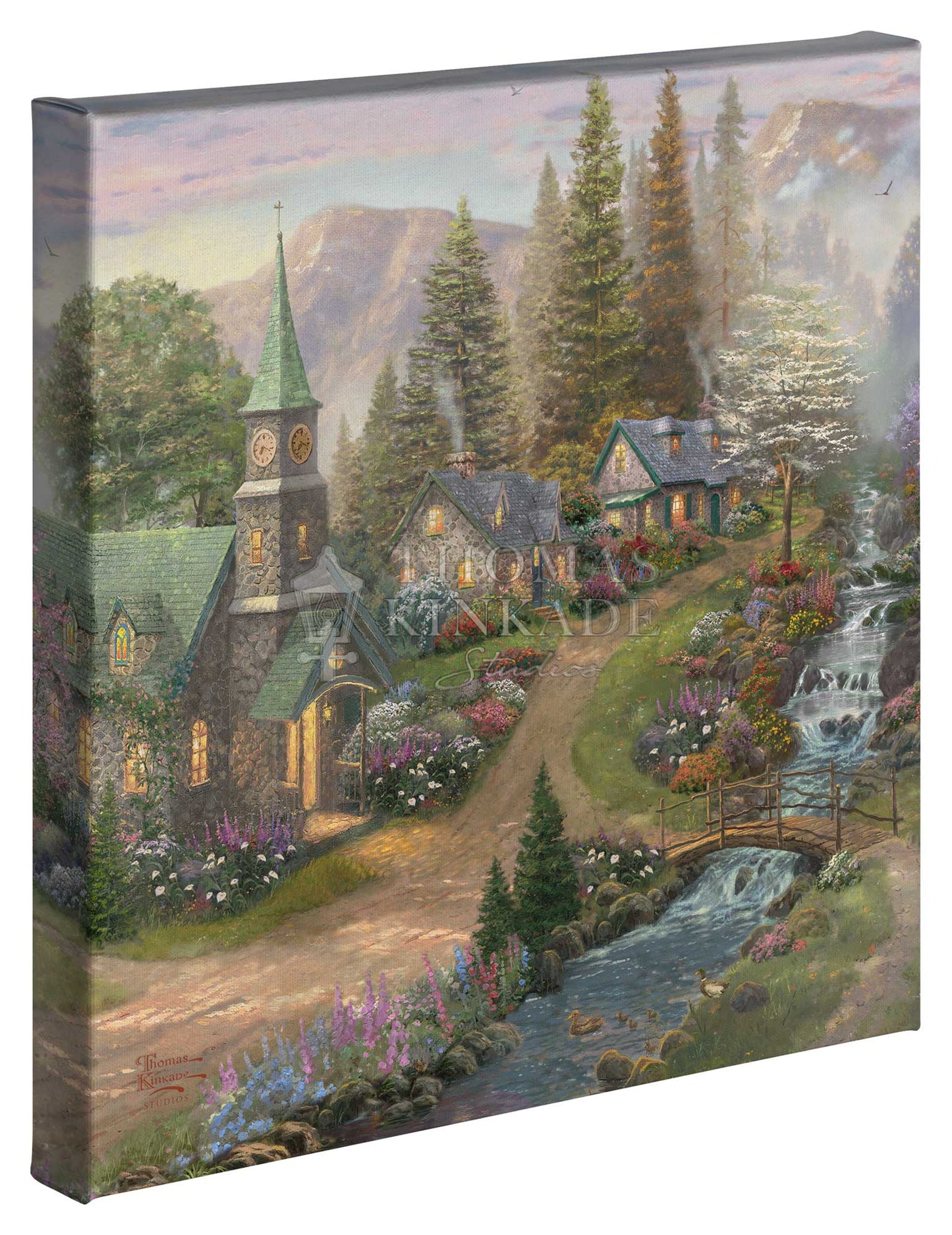 Thomas Kinkade Studios Gallery Wraps are perfect for any space. Each wrap is crafted with our premium canvas reproduction techniques and hand wrapped around a deep, hardwood stretcher bar. Hung as an ensemble or by itself, this frame-less presentation gives you a versatile way to display art in your home.