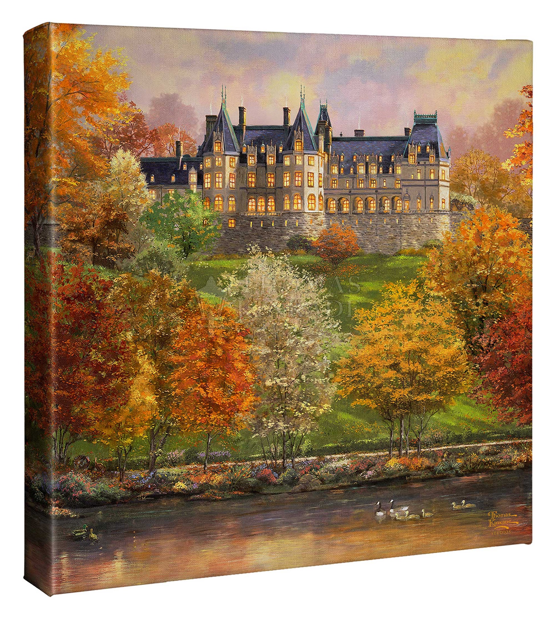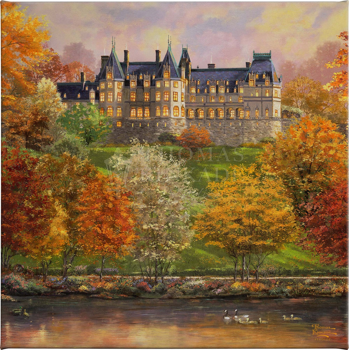 Spring may bring a vibrancy of new colors after a long winter, but fall is where the majesty and bounty of nature exudes its most magnificent hues. Biltmore in the Fall, by Thomas Kinkade Studios, exemplifies this with a display of spectacular color surrounding the grandeur of the estate built by George W. Vanderbilt and completed in 1895. Originally encompassing 125,000 acres, the historic gardens and grounds envelop and enhance the golds, reds, oranges, purples, and browns that fall brings, and surrounds the magnificent home with a warm and inviting glow. Biltmore is a family-owned, world-class travel destination, centered on home, welcoming the families and friends who visit each year. Maintaining the elegance, hospitality, and traditions of the Vanderbilt family and providing visitors with a stunning place to escape and enjoy time together is central to the Biltmore mission. Thomas Kinkade Studios invites you to enjoy this art, which celebrates the magnificence of this historic estate – a beautiful getaway nestled in the mountains surrounding Asheville, North Carolina, with enchanting architecture, gardens, and landscapes meant to charm, inspire, and delight.Product Specifications