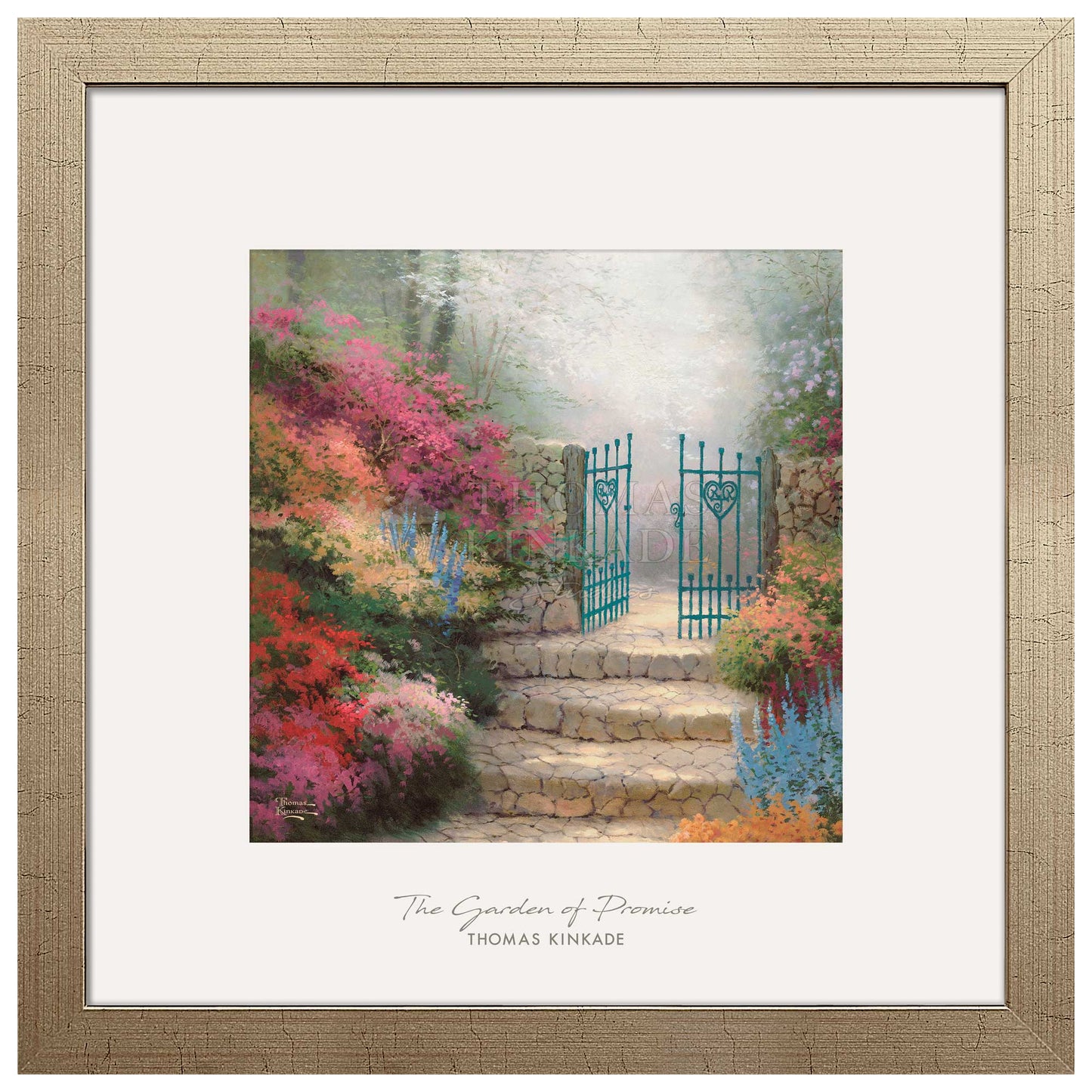 Luxury, elegance, and sophistication define the Prominence Collection by Thomas Kinkade Studios. Classic Kinkade art paired with exquisite style combine to create a stunning large-format home décor piece like no other. Glimmering notes of pale silver and warm gold with a subtle hint of natural wood give the Prominence Frame a striking profile. Fine archival paper mounted with a 5” Pure White mat and up spacer highlight the intricacies of these gorgeous Thomas Kinkade Studios prints.