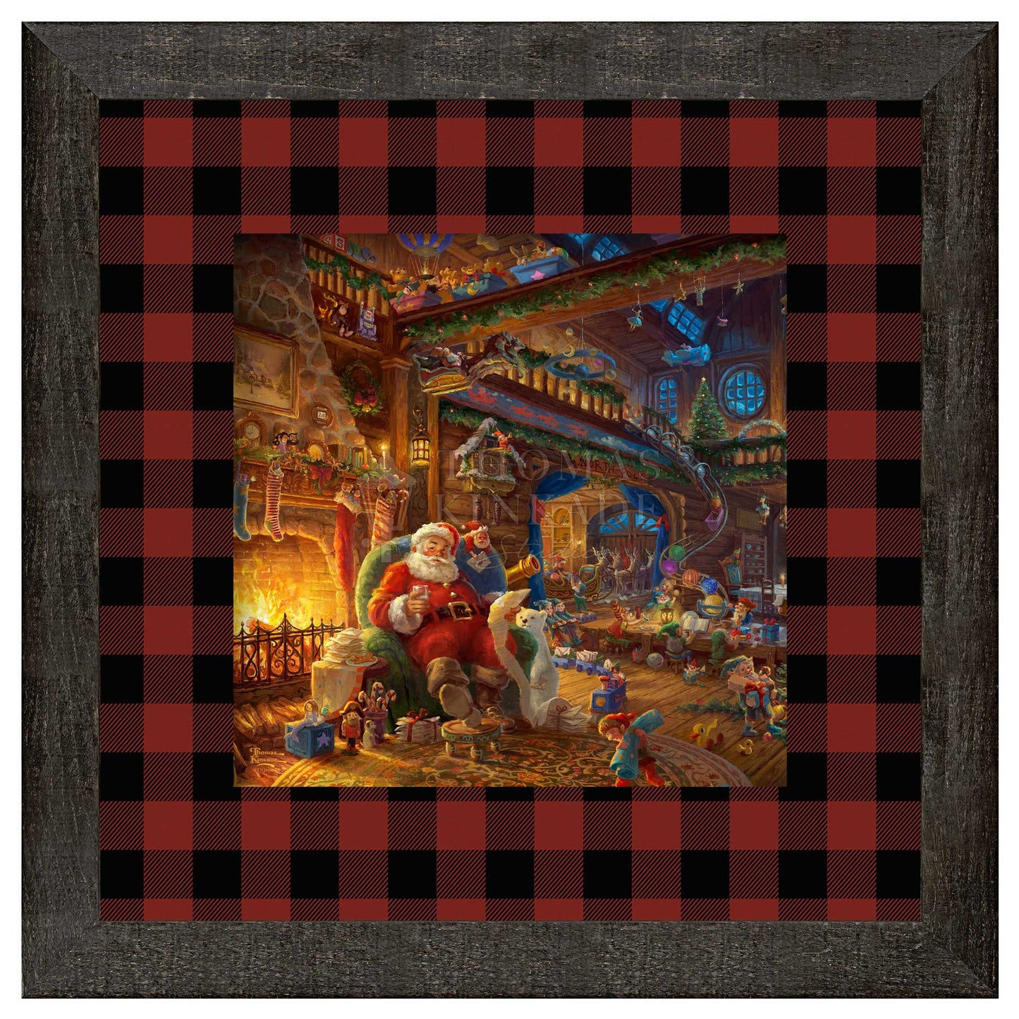 Decorate for Christmas with this festive Holiday framed print by Thomas Kinkade Studios. The season's magic comes to life with Santa art mounted in a rustic wood frame with a classic red plaid mat. Hung alone or with a matching art piece, this Santa home décor will bring the spirit of Christmas into your home. Features