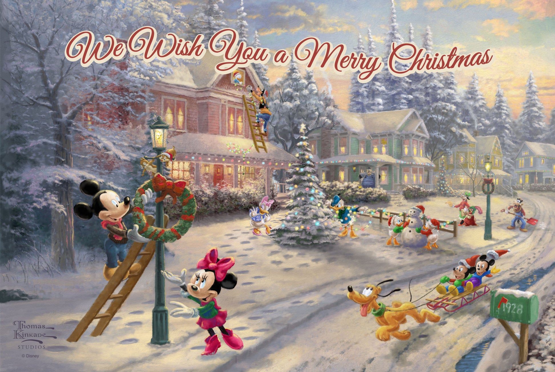 Thomas Kinkade was a life-long admirer of Walt Disney and the wonderful characters he created. While Thom re-created many of his favorite Disney stories on canvas, he also envisioned classic Disney characters set within traditional Kinkade images. In these paintings from Thomas Kinkade Studios, his dream is proudly brought to life. Thom loved Christmas and always proclaimed that it was a magical time of year. In Mickey’s Victorian Christmas, Thomas Kinkade Studios is thrilled to showcase Mickey and all his friends preparing for their favorite time of the year. Mickey and Minnie are hanging the festive wreaths, while Daisy and Donald decorate the tree in the front yard. All of our friends are being closely watched by Mortimer. Will he take this as a decorating challenge?