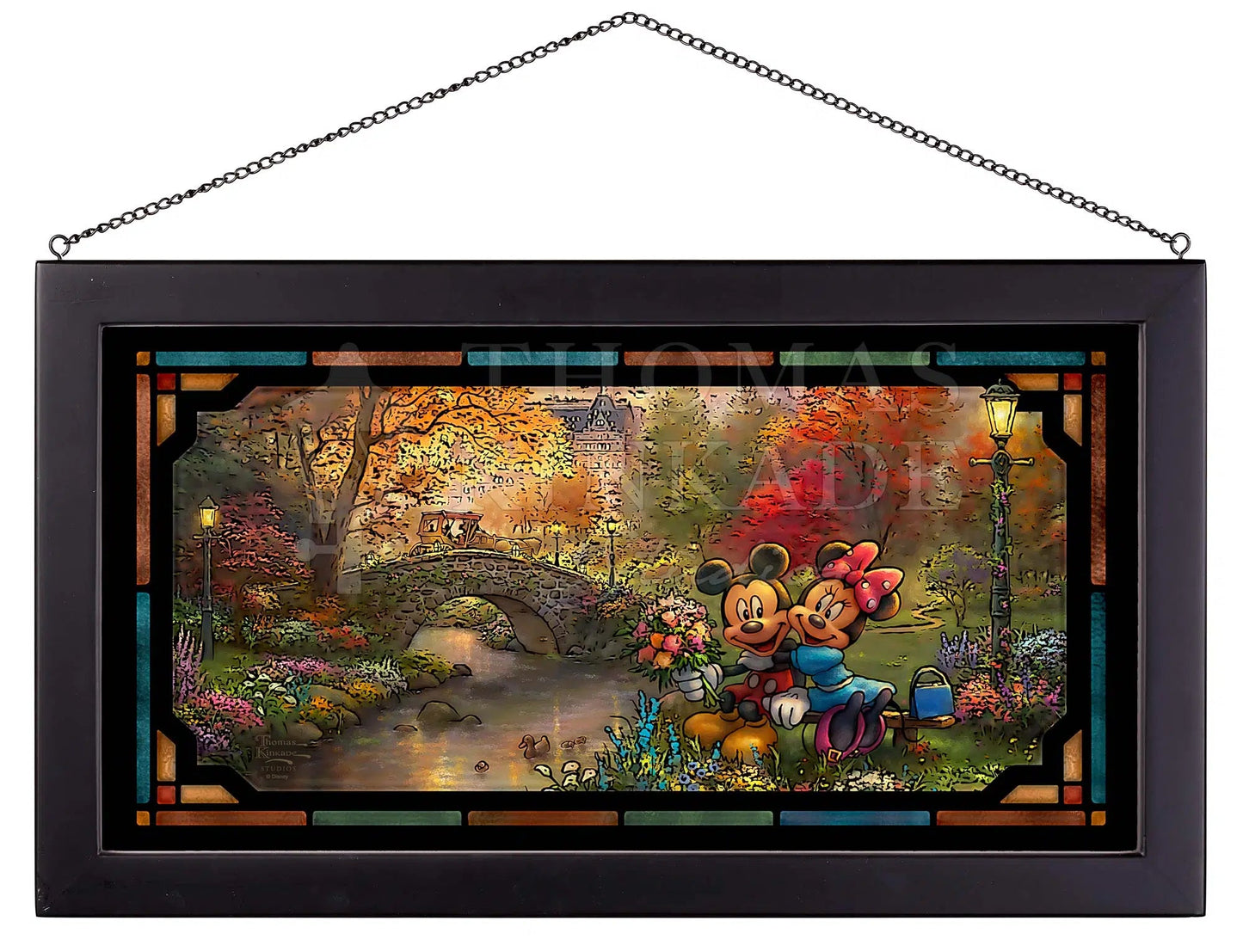 Disney Mickey and Minnie - Sweetheart Central Park - 13" x 23" Framed Glass Art