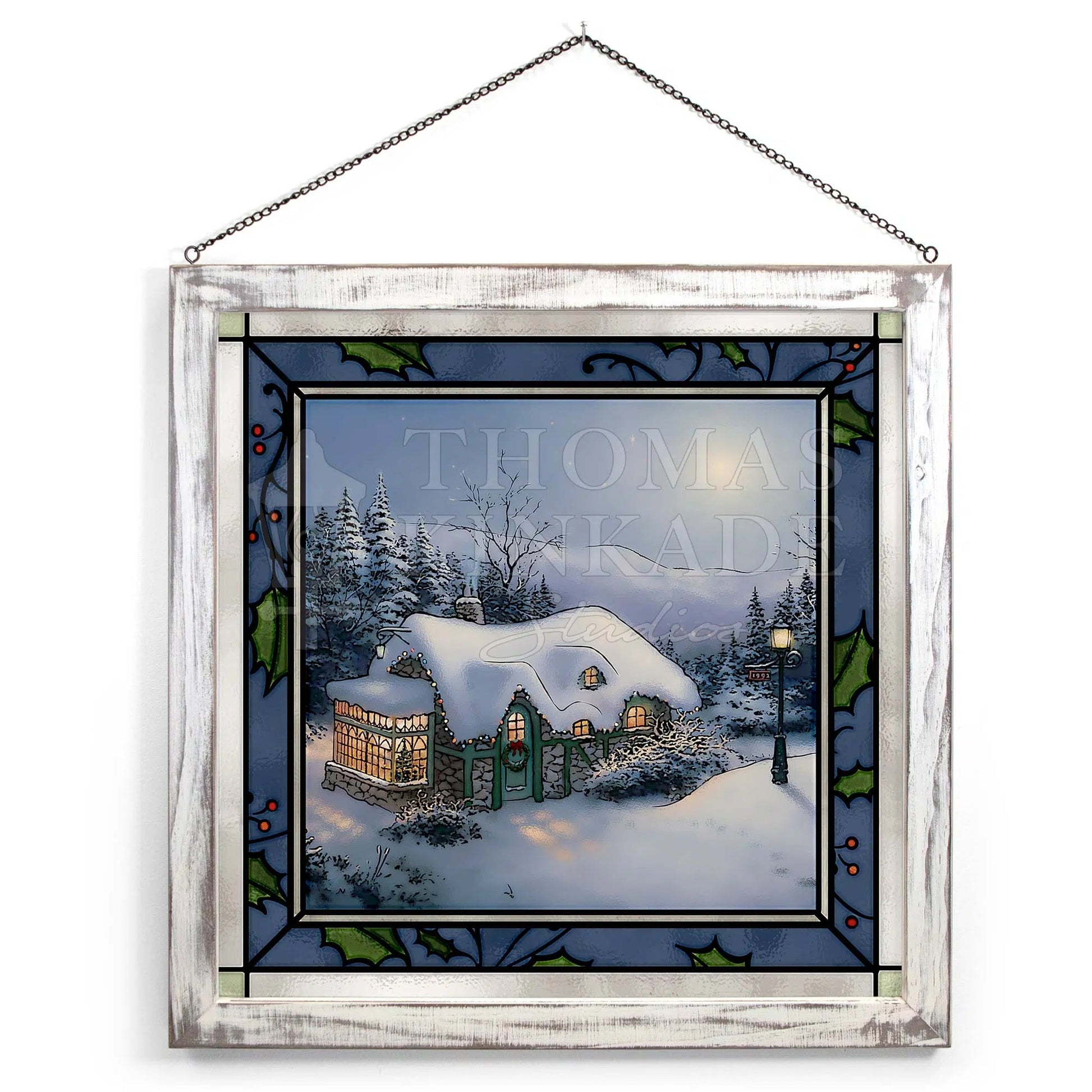 Let the light shine! Stained glass art hangings show their true colors when back-lit with natural sunlight. Classic images by Thomas Kinkade Studios are printed with fade resistant inks directly on glass, framed, and ready to hang.