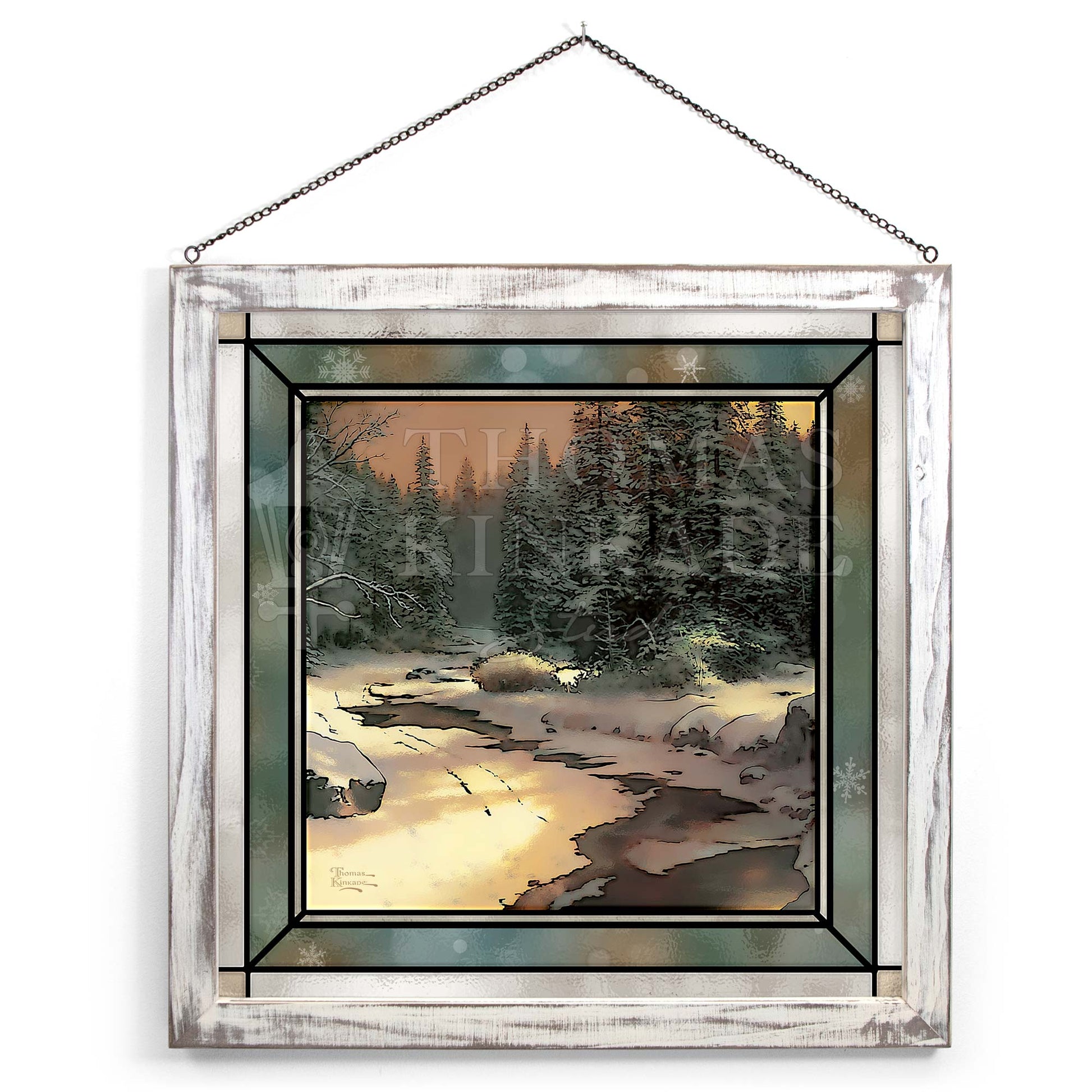 Let the light shine! Stained glass art hangings show their true colors when back-lit with natural sunlight. Classic images by Thomas Kinkade Studios are printed with fade resistant inks directly on glass, framed, and ready to hang.