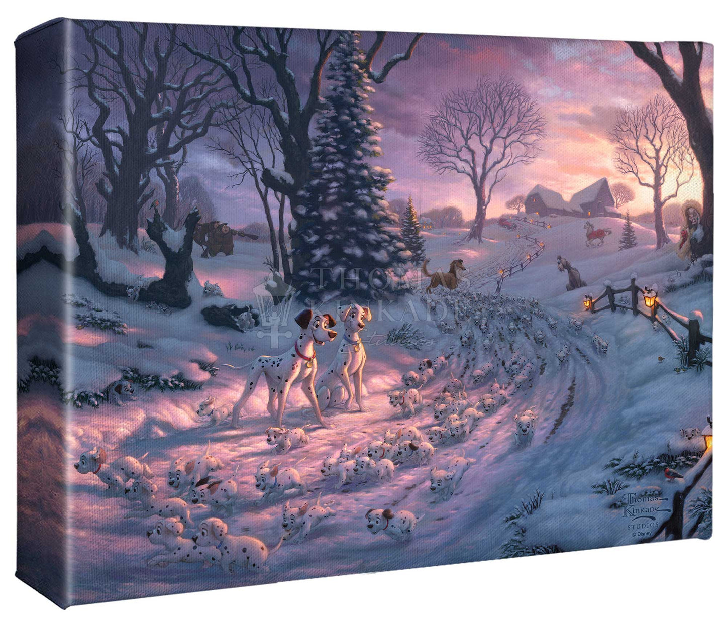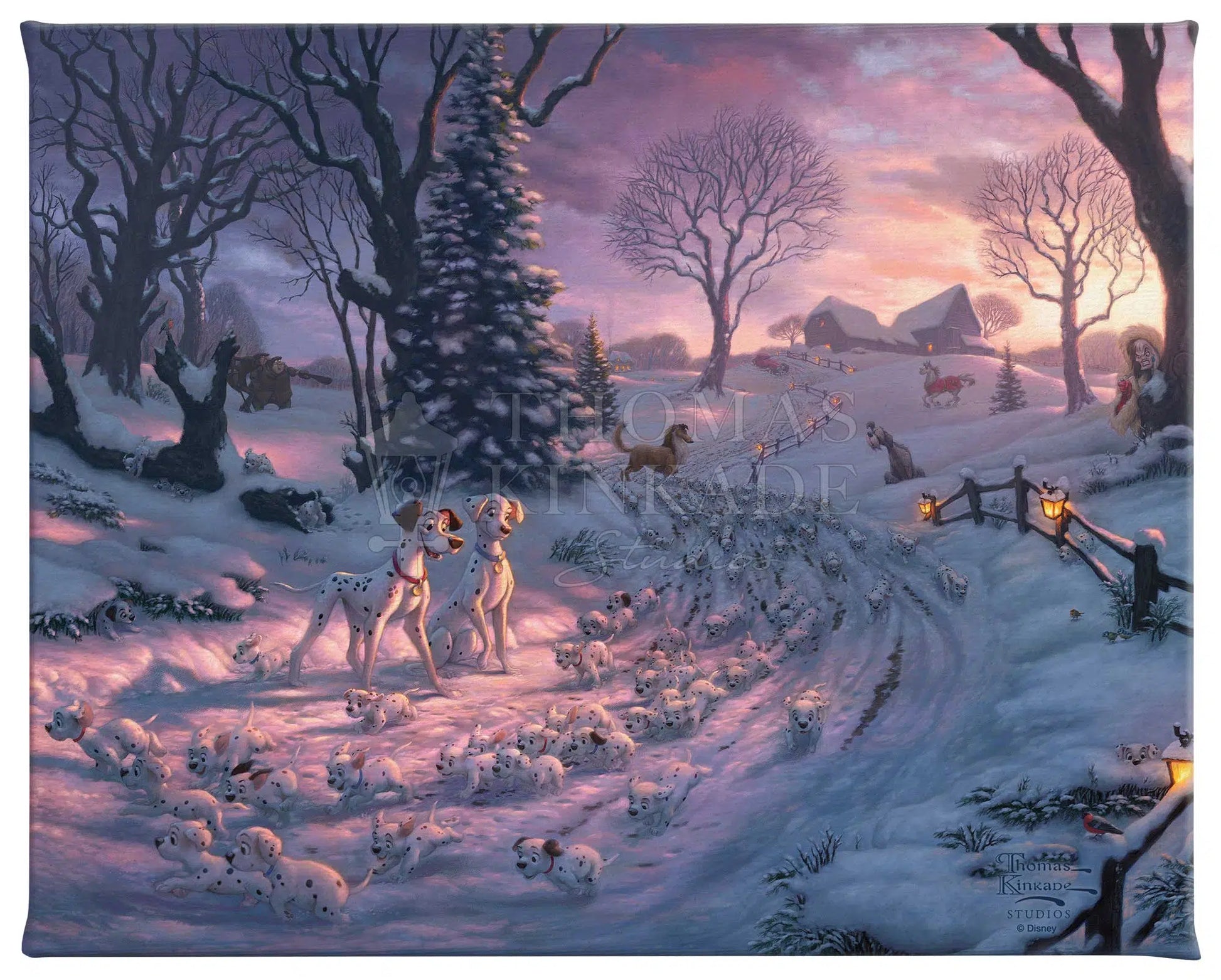 Love is on the run. Pongo and Perdita’s puppies have been freed and are on their way back to London with the help of some incredible friends. Collie and Colonel are ready to assist the puppies on their journey to freedom. Jasper and Horace have noticed Cruella de Vil stealthily skulking behind a nearby tree, plotting a way to recapture the puppies. In Disney - 101 Dalmatians on the Run, Thomas Kinkade Studios captures the love of Pongo and Perdita’s family and invites all to root for the puppies on their adventure.Product Specifications