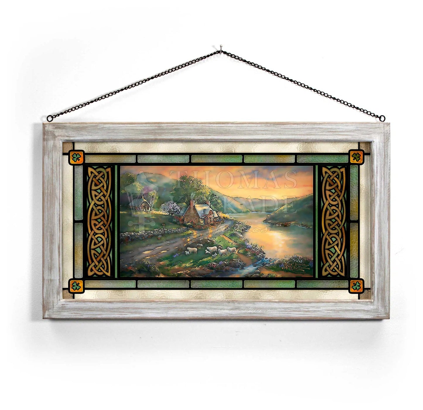 Thomas Kinkade’s family heralds from Ireland, and he had a life-long attachment to the Emerald Isle. In Daybreak at Emerald Valley, Thomas Kinkade Studios created an homage to the two masterworks that Thom painted as a tribute to Ireland - Emerald Isle Cottage and Emerald Valley.