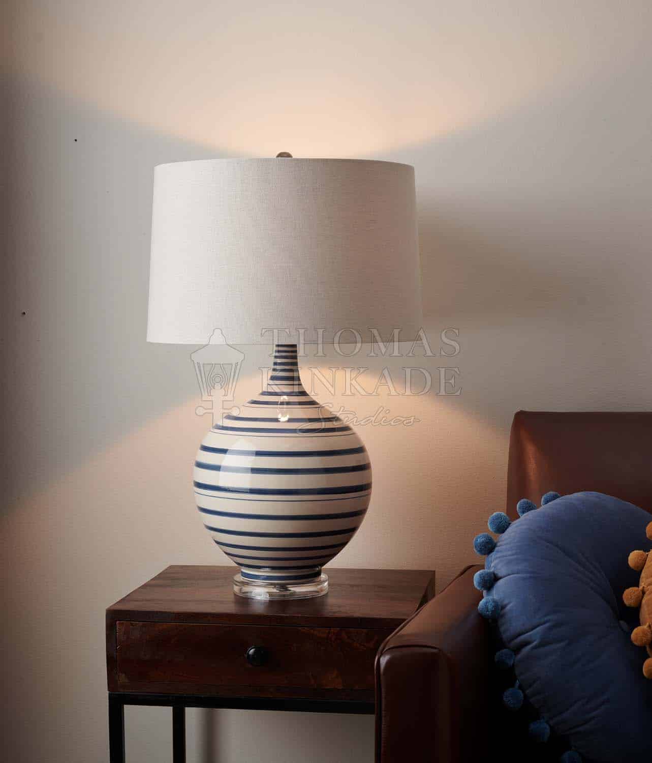 Beautifully crafted, the blue and white colors combined with the linen shade and acrylic accents make this lamp a stunning addition to any room.