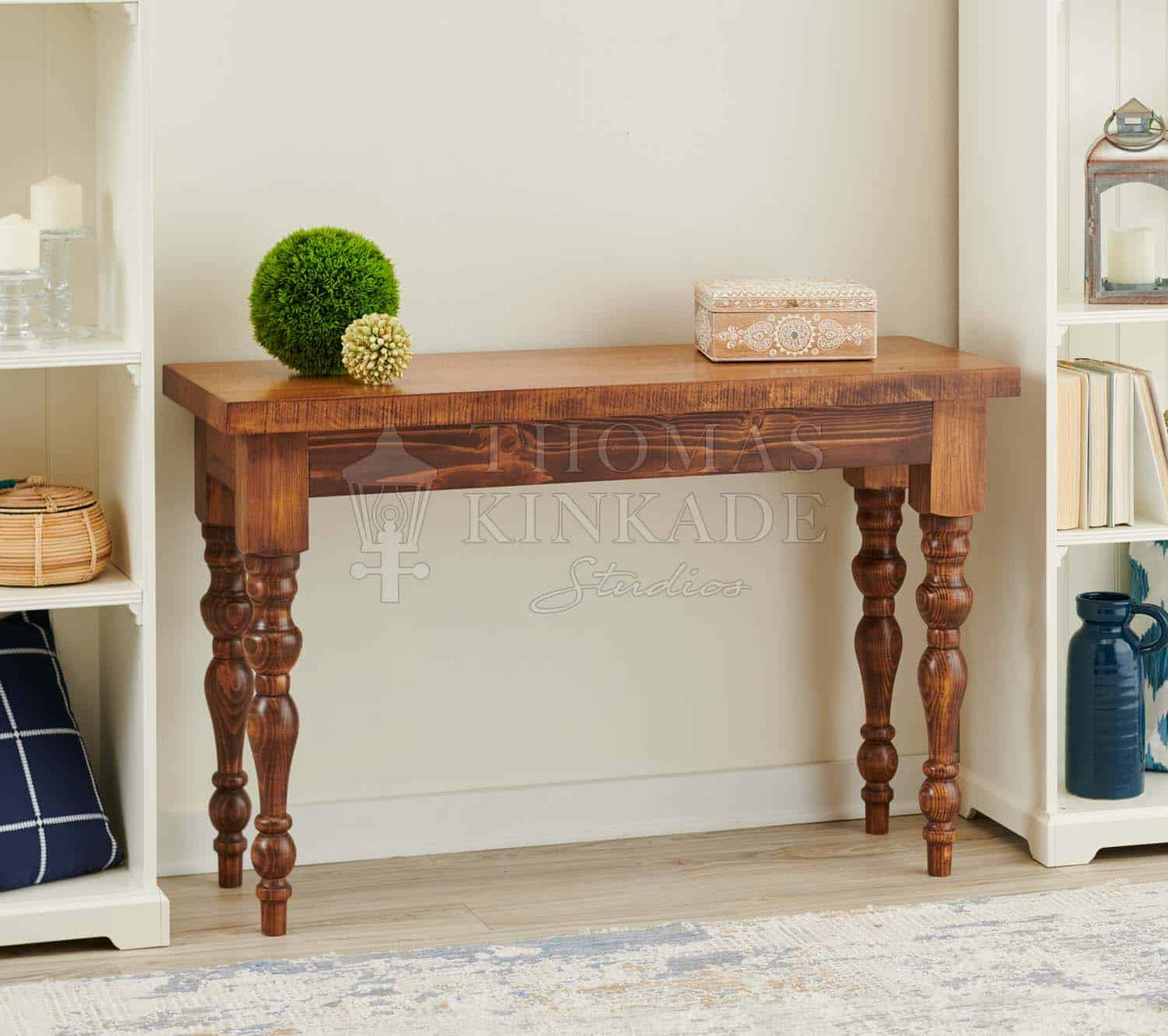This collection of furniture is specially curated to coordinate with Thomas Kinkade Limited Edition Art and Home Décor. This classic line of couches, chairs, and benches are handcrafted and made to order. Neutral tones with colorful accents beautifully compliment the pallets of your favorite Thomas Kinkade Studios Art.