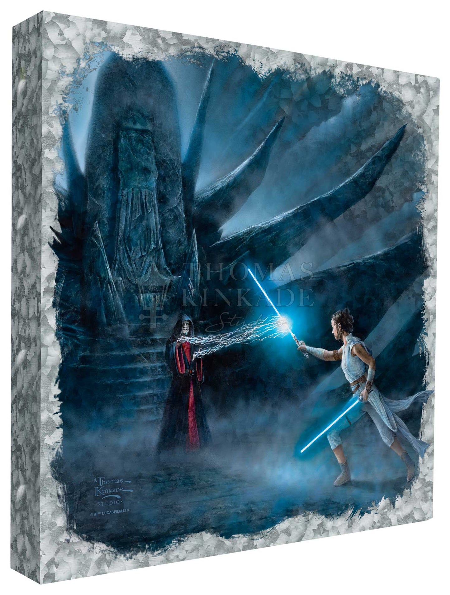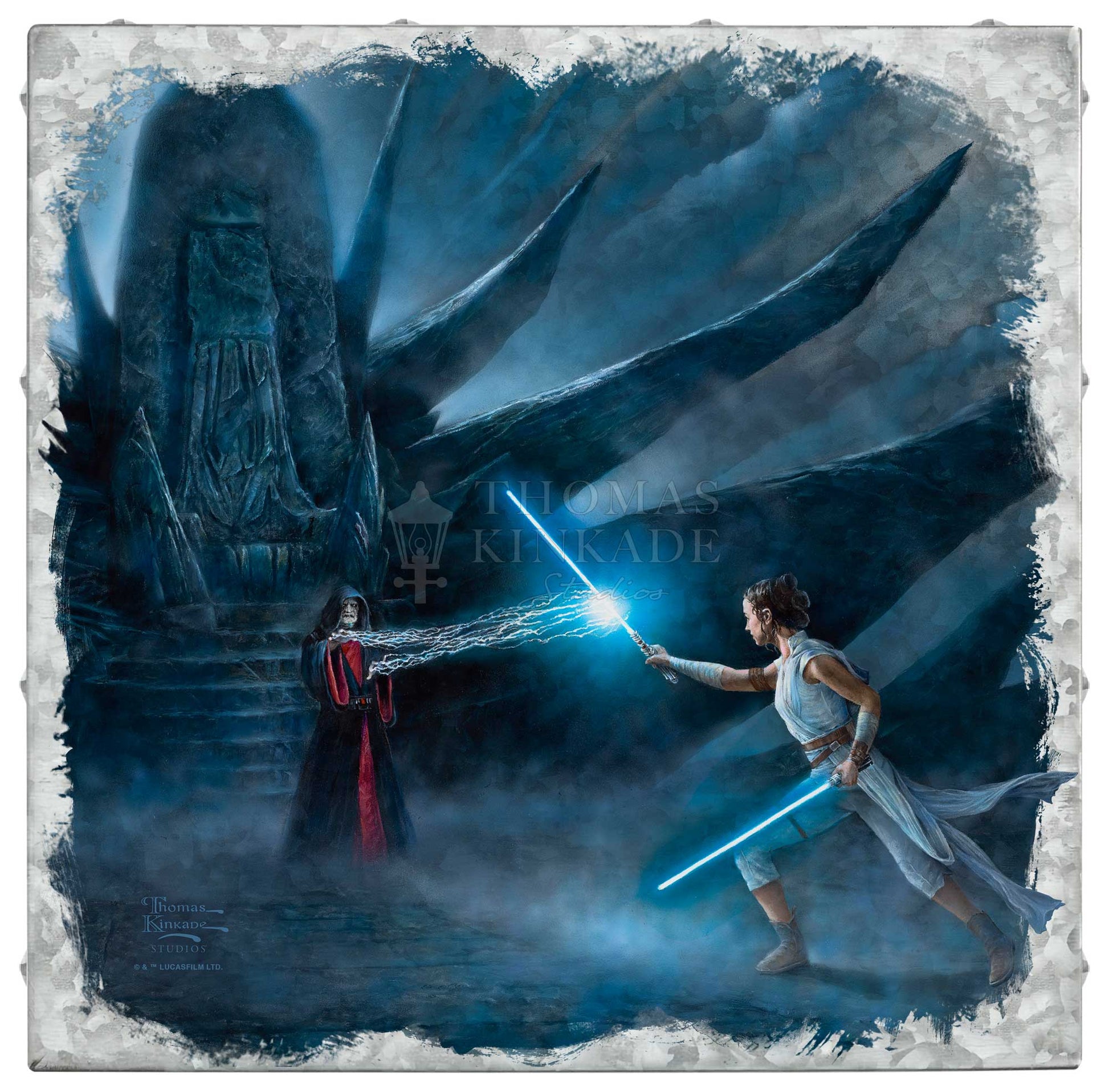 The galaxy has heard a very mysterious broadcast. It's a threat of revenge, and it seems to be the voice of the late Emperor Palpatine™. The Resistance™ is now taking the war back to the First Order™. Rey has landed Luke Skywalker's™ X-wing on the planet Exegol™. It is there that she finds Palpatine who reveals that he is her grandfather. Channeling the Force and Jedi before her, Rey draws her Lightsaber and confronts the Emperor. Thomas Kinkade Studios is pleased to present Rey's™ Awakening.