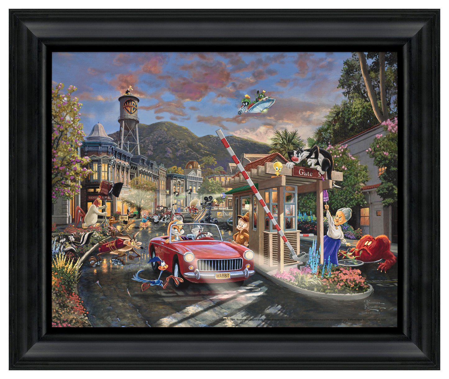 On a backlot in Burbank, California a classic Looney Tunes tale is being filmed. The intrepid director, Daffy Duck, has lined up the perfect shot with the help of lighting specialist, Foghorn Leghorn. Cameraman, Speedy Gonzales has a clear view of the Tasmanian Devil riding his motorcycle, and Yosemite Sam is catching all the wonderful sound effects. Perched on top of Gate 5, Tweety is wondering if he has seen the “Puddy Tat” Sylvester, while Granny is doing her very best to make sure that Tweety is always kept safe. Nearby, we find the Road Runner and Wile E. Coyote rehearsing a future scene for the film. Bugs Bunny has some time before he is needed back on set and is taking Lola Bunny for a quick spin in his classic red two-seater sports car. Meanwhile, stealthily approaching from above, Marvin the Martian and his trusty space dog K-9 plot how they can claim not only Burbank, but this planet in the name of Mars!