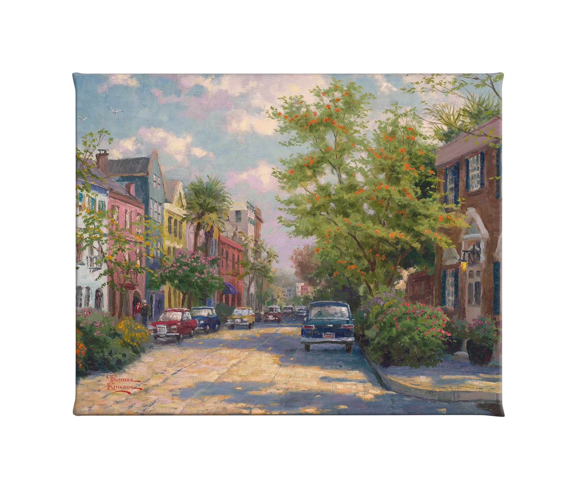 In a picturesque section such as Rainbow Row the pinks and yellows and grays of the weathered walls meld into a pastel rainbow of rich earth-tones. I included a selection of nostalgic Fifties cars. I hope you'll come along on Thomas Kinkade's artistic tour of Charleston.