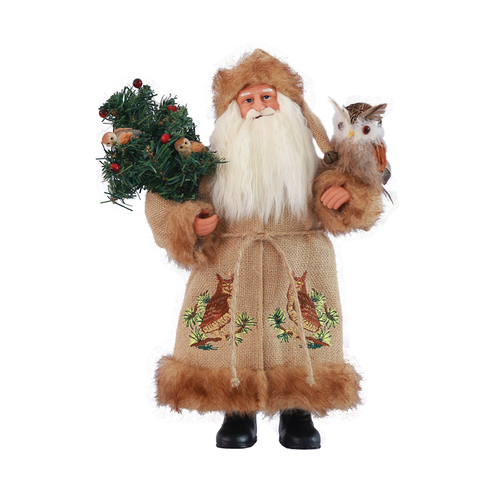 If you're wise as an owl, you've probably learned that it's better to give than to receive, and no one knows this more than good old Santa Claus! Holding momma owl on one arm and a green tree full of baby owlets in the other, Santa is dressed in a natural looking faux fur lined robe decorated with wise old owls. Make your holidays the best ever with this wonderfully handcrafted 15" Night Watchman Santa figurine.