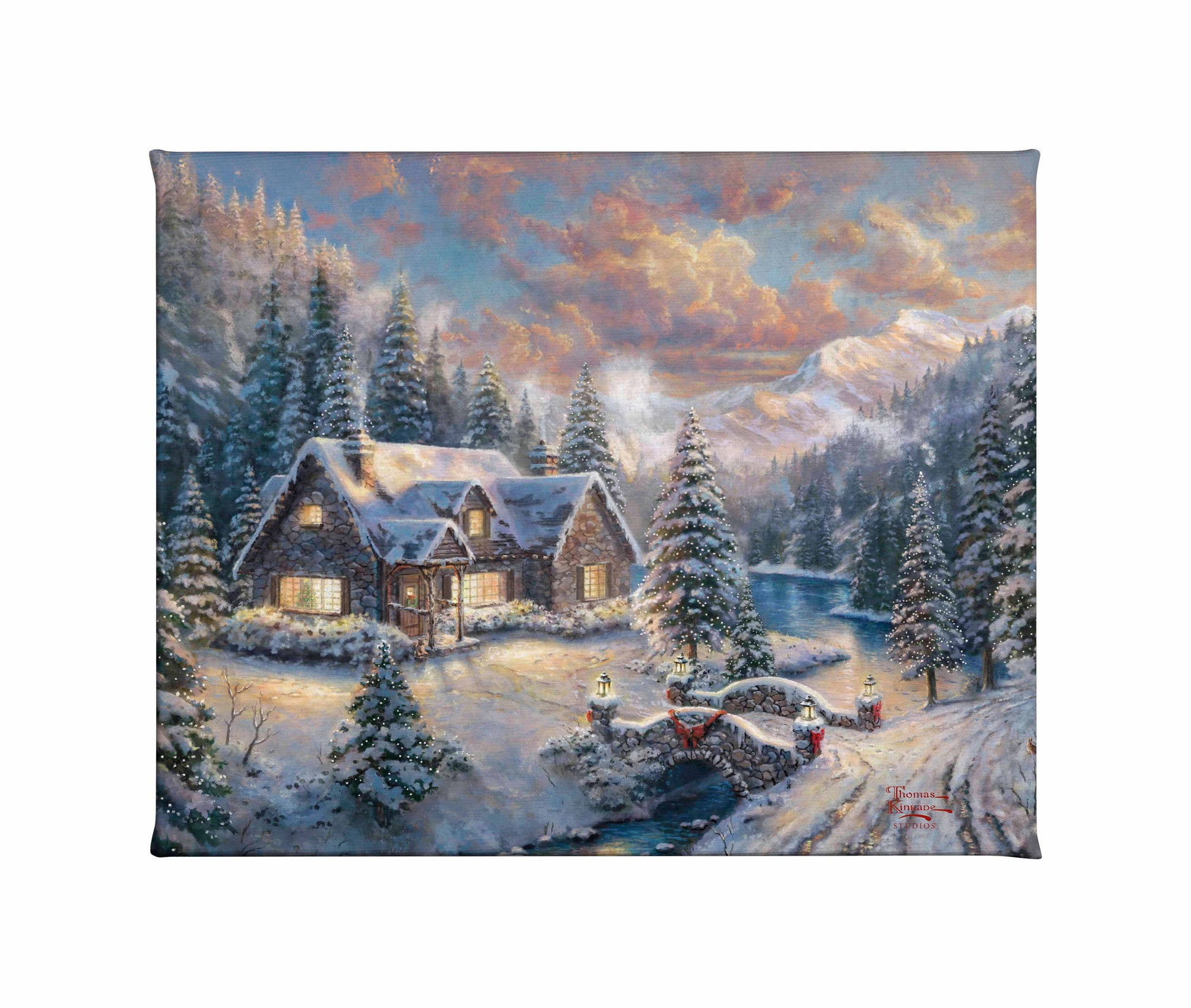 Thomas Kinkade Studios Gallery Wraps are perfect for any space. Each wrap is crafted with our premium canvas reproduction techniques and hand wrapped around a deep, hardwood stretcher bar. Hung as an ensemble or by itself, this frame-less presentation gives you a versatile way to display art in your home.