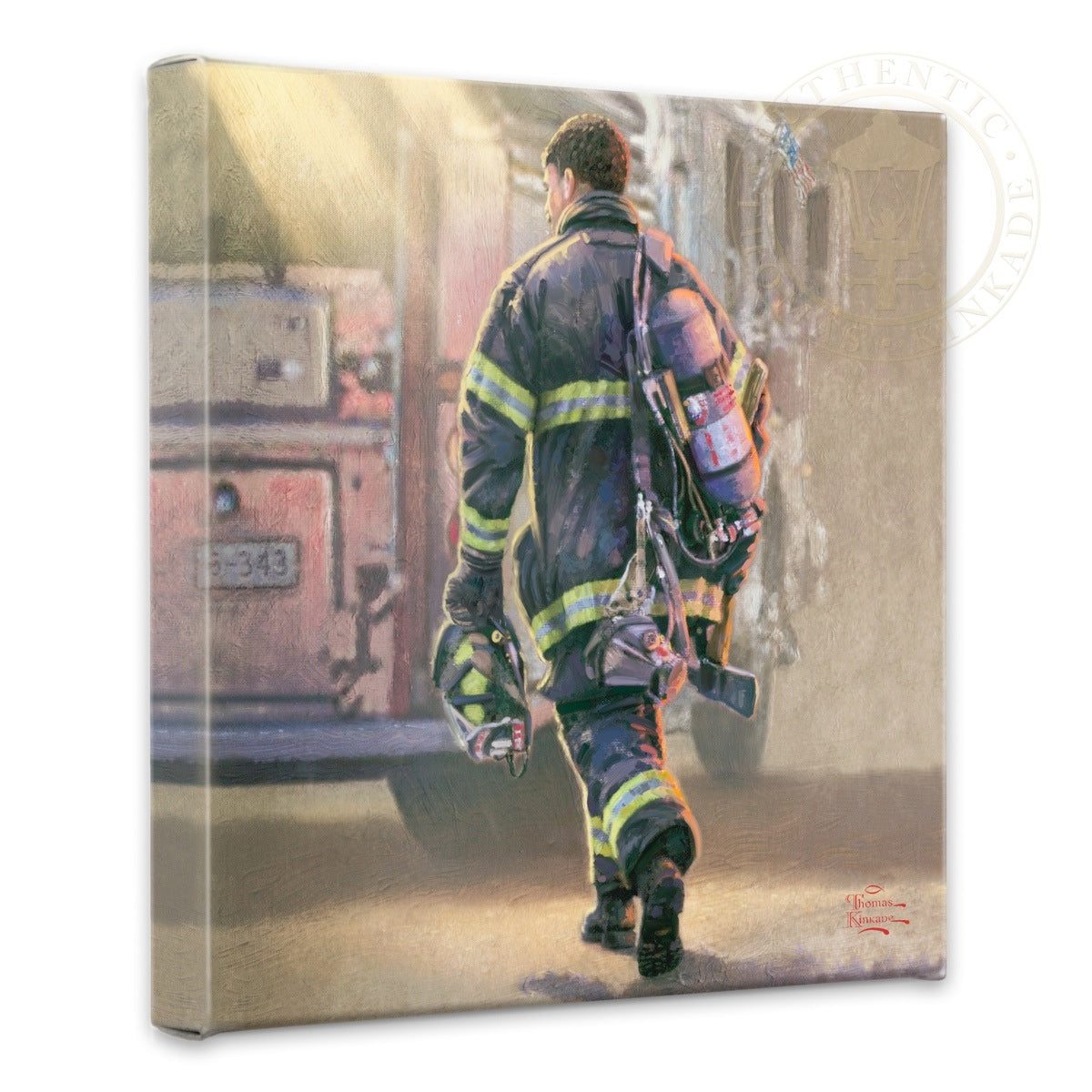 "There is no greater love than to lay down one's life for one's friends," a divine truism emblematic of the foundational bonds that undergird and inextricably link our nation. Nowhere has that love been more vividly expressed than in the selfless sacrifice of our beloved first responders ... and especially in the nobility of our firefighters. Their own mantra, eloquently expressed in A.W. "Smokey" Linn's "Firemen's Prayer," is a moving oath and testament to the humanity and honor of our firefighting brothers and sisters. Through its expressions, their character is truly revealed as they selflessly put others above self... © The Thomas Kinkade Estate – All Rights ReservedProduct Specifications