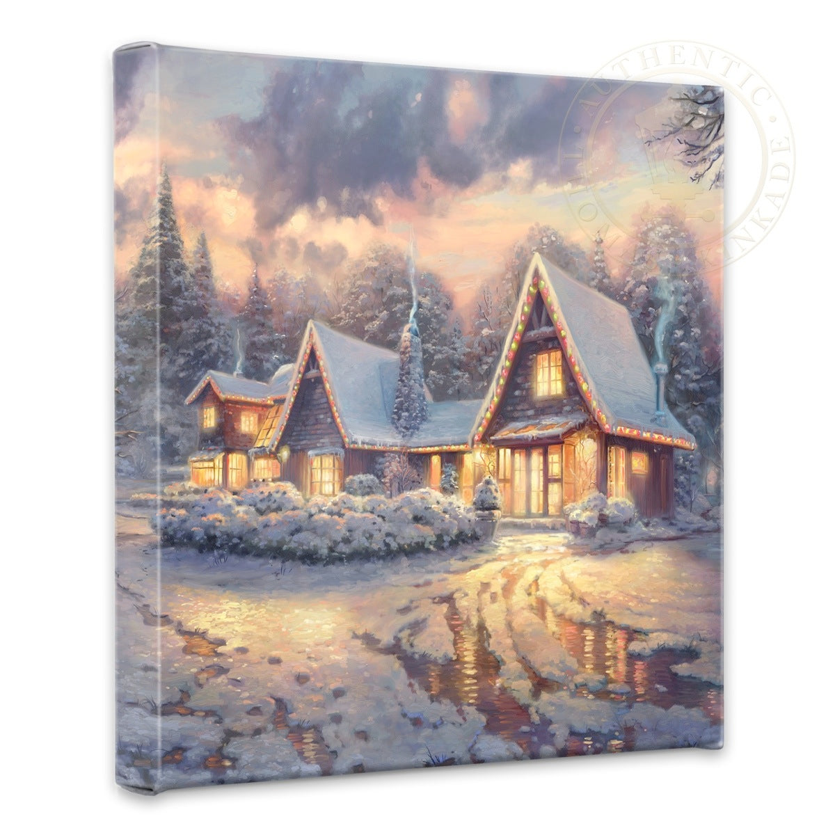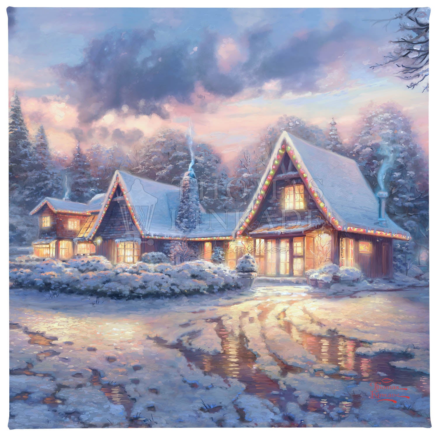 There is no better time of the year than Christmas as an opportunity to treasure family, love and hope as gifts from God. It truly is a miraculous season and one that inspires reflection about these blessings in my own heart and spirit. Christmas Lodge is a film dedicated to these divinely given human experiences and one that I believe you and your family can cherish as part of your holiday tradition. In addition to this family friendly movie I also hope you will enjoy my artistic interpretation of the story's meaning in my painting which is also titled Christmas Lodge, depicting a warm home on a cold evening. With lights glowing and hearths burning, the lodge welcomes the winter traveler. Promises of hot chocolate, friendly smiles and heartfelt hugs await those who enter. I wish that family, love and hope be your gifts this Yuletide season. Merry Christmas and may God bless you in all you do! © The Thomas Kinkade Estate – All Rights ReservedProduct Specifications