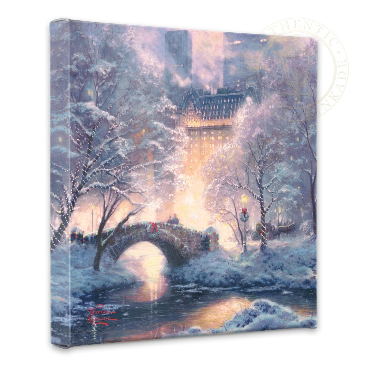 I love visiting Central Park...it truly is a focal point of beauty, natural harmony, and showcase for the people of New York. Central Park is an amazing focal point for New York City. People of all cultures and backgrounds enjoy its natural setting nestled deep within the walls of this iconic city. The holiday season adds a special charm to the park as holiday lights illuminate the snow dusted ground and chilled winding creek. In the background, The Plaza Hotel stoically braves the winter air. A stone's throw away the merchants of Fifth Avenue ply their holiday goods as New Yorkers hurry to complete their holiday preparations. In every sense, the city is in full celebration. I love visiting Central Park...it truly is a focal point of beauty, natural harmony, and showcase for the people of New York. © The Thomas Kinkade Estate – All Rights ReservedProduct Specifications