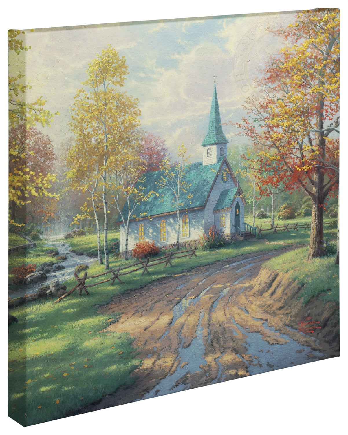 A grove of aspens high in the mountains would be an idyllic place for worship. I have imagined just such a church in The Aspen Chapel where aspen trees shimmer in the breeze like liquid gold. © The Thomas Kinkade Estate – All Rights ReservedProduct Specifications