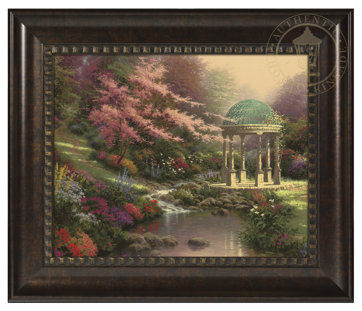 The Brushstroke Vignette collection showcases scenes from classic Thomas Kinkade paintings on canvas. Inspired by antique Italian designs, classic frames complement your artwork with a distressed look and a luxuriously warm finish. Available in Rich Burl and Burnished Gold, they provide a sophisticated look that will complement any home decor.