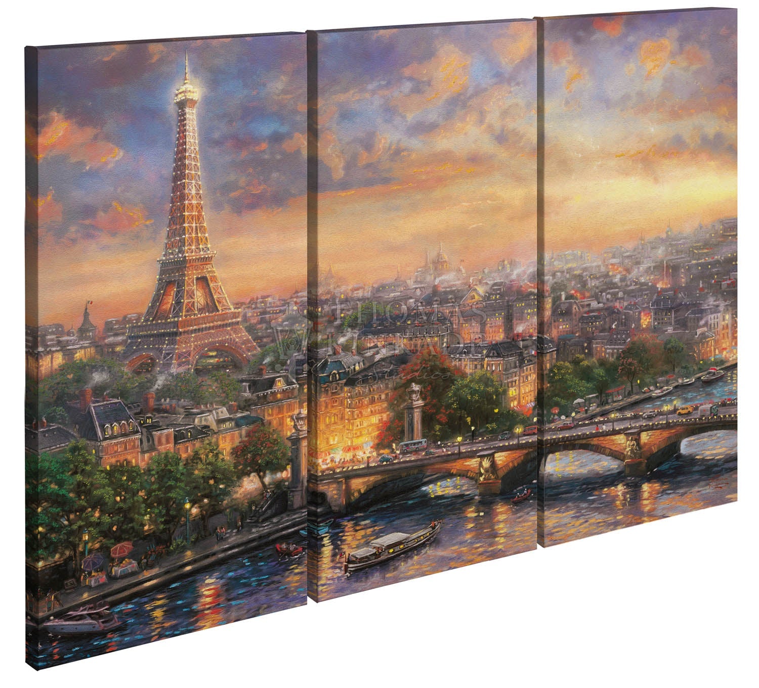 Paris, City of Love - 36" x 48" (Set of 3) Triptych Giclee Canvas