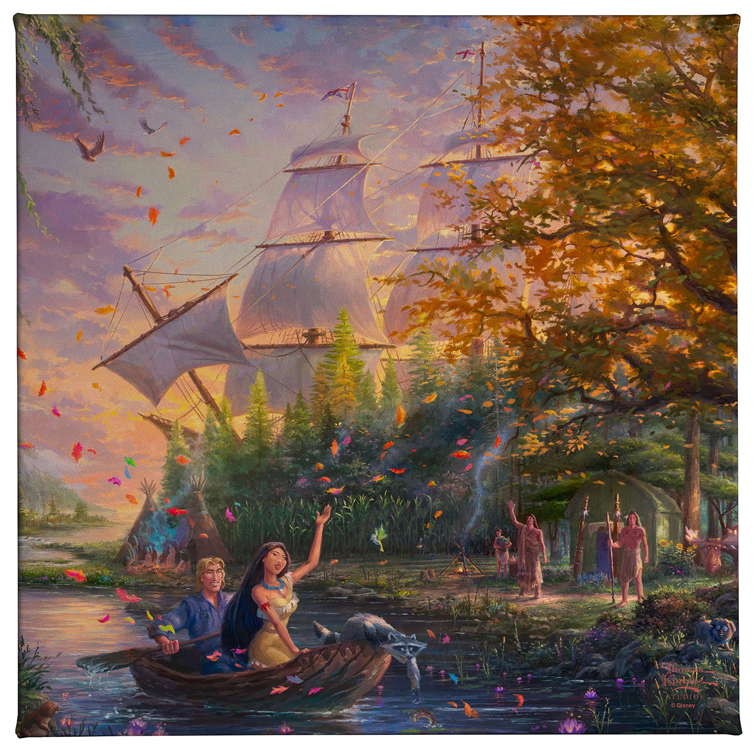 As the evening sun retreats beyond the ship, Susan Constant, and the horizon, a new love is forming between two distant worlds. The artists at Thomas Kinkade Studios have brilliantly captured one of Disney’s most successful box office hits in one scene entitled, “Pocahontas - Colors of Love.”