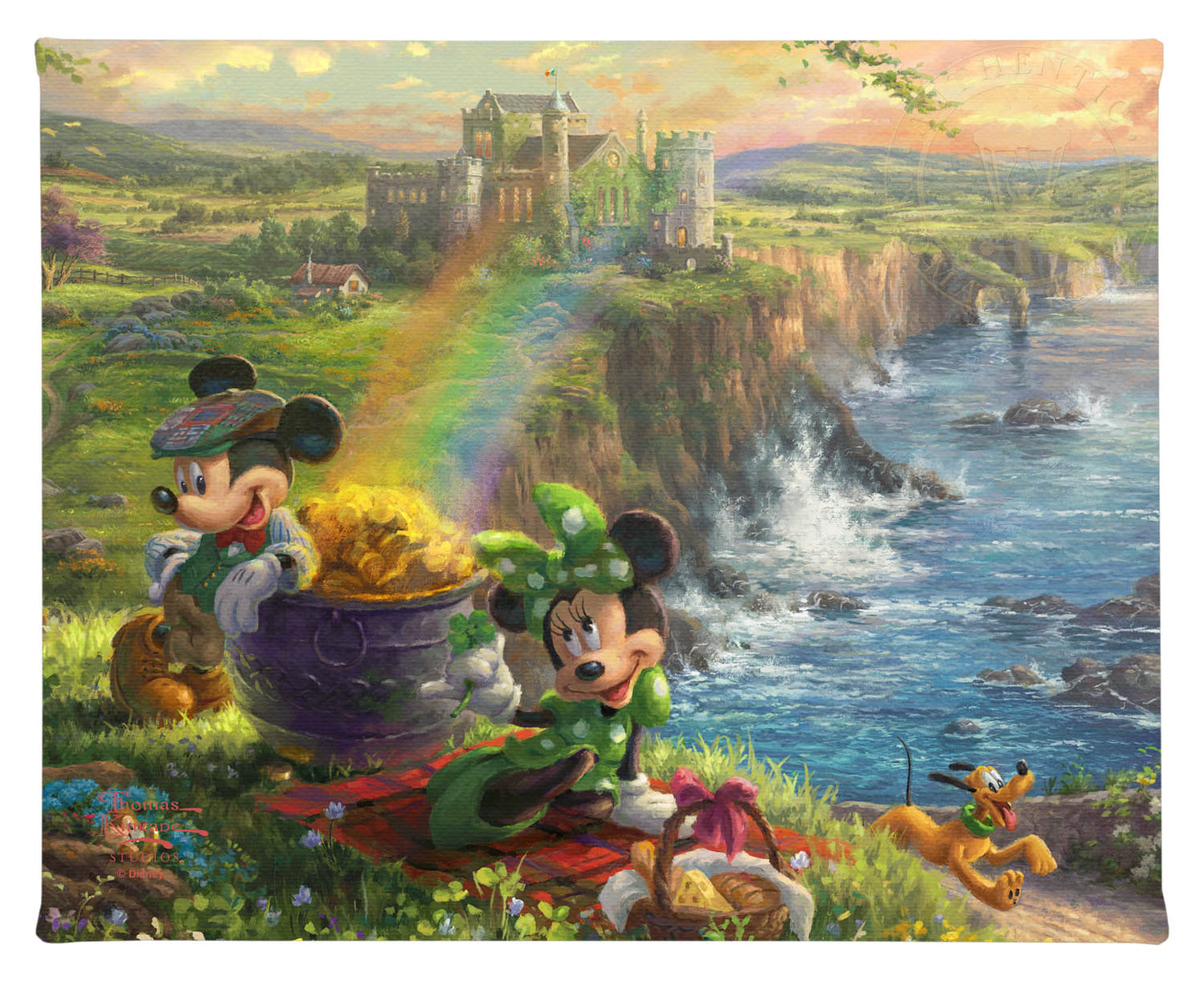 In the Passport to Adventures series by Thomas Kinkade Studios, Mickey and Minnie, along with some of their closest friends, explore famous travel destinations around the world. This time Mickey and friends find themselves on an adventure in Ireland! The Emerald Isle is often noted as being one of the most beautiful places on earth to visit, with its endless brilliant green hills and dramatic cliffs that reach down to picturesque beaches and a turquoise sea, along with magnificent castles and charming villages. Dressed in the traditional color of the Irish, Mickey and Minnie seem to have luck on their side. Just as Minnie picked a four-leaf clover, a pot of gold at the end of a rainbow appeared out of nowhere to join their picnic! What a perfect ending to a such a magical day. Dressed in the traditional color of the Irish, Mickey and Minnie seem to have luck on their side. Just as Minnie picked a four-leaf clover, a pot of gold at the end of a rainbow appeared out of nowhere to join their picnic! What a perfect ending to a such a magical day. © Disney © The Thomas Kinkade Estate – All Rights ReservedProduct Specifications